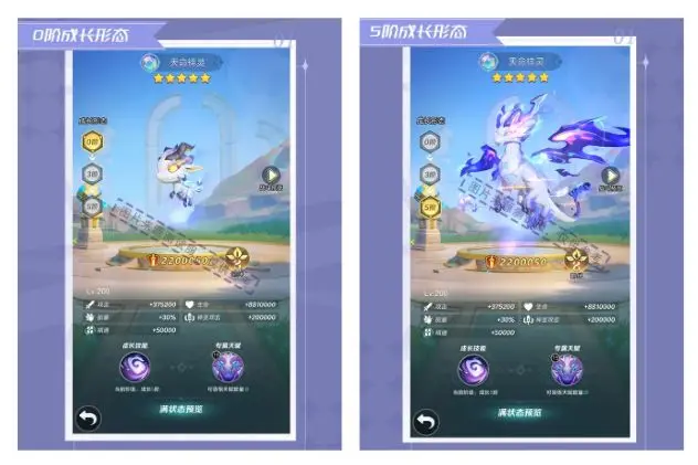 二星(100碎片),幻兽技能释放概率为70%,提升了15%,提升明显。在目前很难释放怒气的环境,提高成功率很有必要,2星幻兽也是优先升星选择。