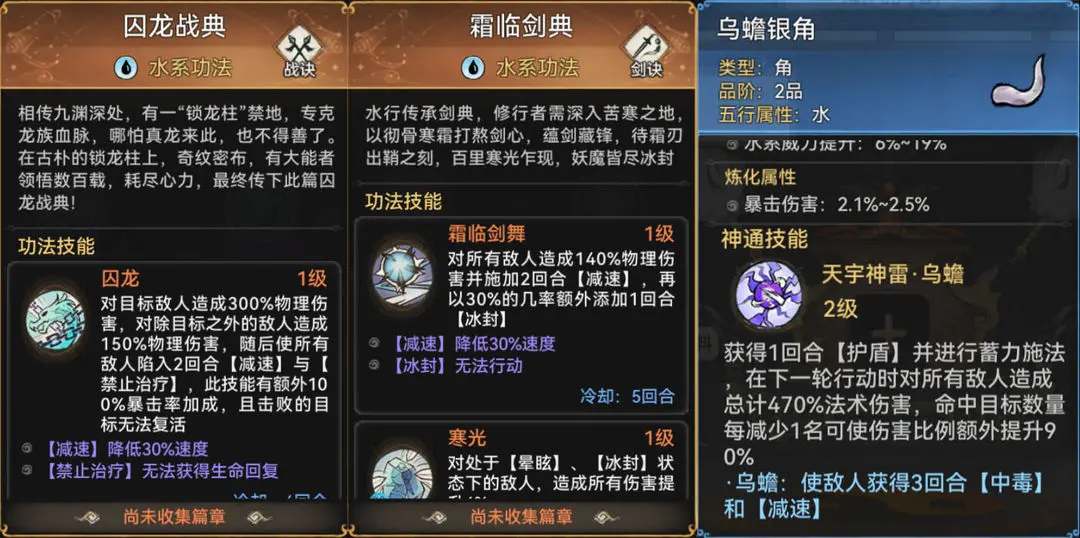 和火剑(火系剑修)一样,水剑自然也是天水灵根最好。虽然水剑的爆发能力稍逊于火剑,但具备了更多控制能力。功法上可以选择囚龙战典+霜临剑典,霜临剑典可以通过每周的天道传书概率获得,升级相对容易。在pve环境中霜临剑典的表现尤为出色,如果是pvp的话也可以换成听潮剑诀。对于水剑来说天命最好是有养剑、剑意,法宝首选乌蟾银角,或者蚀骨毒牙也可以。