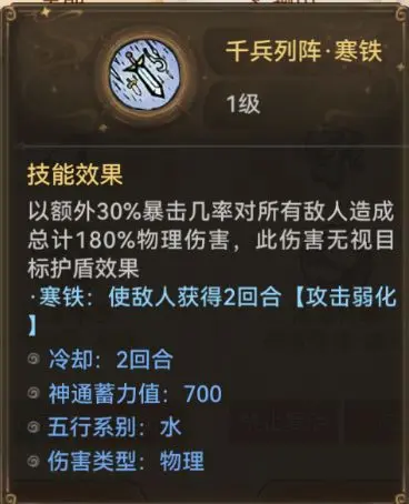 秦冰是一名攻防一体的前排兵家弟子,在前期是新手的必备好友,能打能输出。其技能【影华】对敌人造成伤害的同时不仅可以恢复自身生命值,还可以获得对敌人的伤害反弹效果,配合其天命可以进一步加强自身反伤回血能力,属于能抗能打的典范,是我们目前前排的首选。