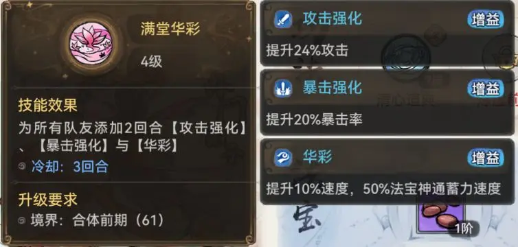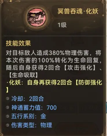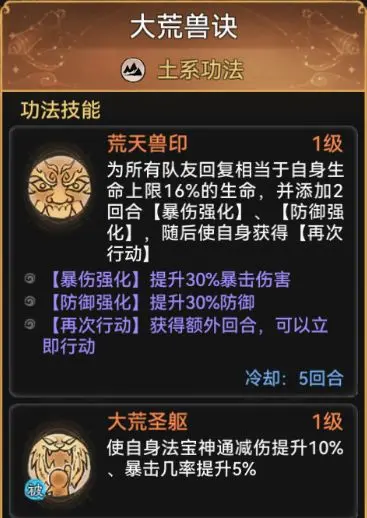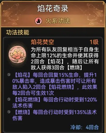 但由于被动回血是概率暴击触发,功法焰花奇录和大兽荒诀可以确保其稳定的回血能力。