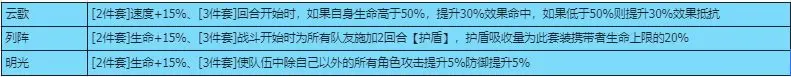 装备词条云歌可以调控唐蝶衣的速度,列阵和明光词条可以进一步加强她的辅助能力