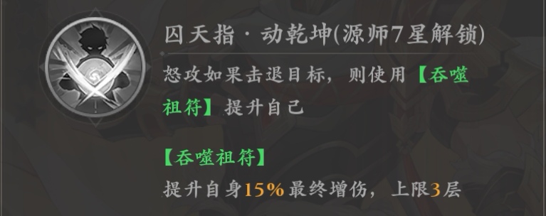 7星:怒攻若击退目标,则自身+15%最终增伤,上限3层。