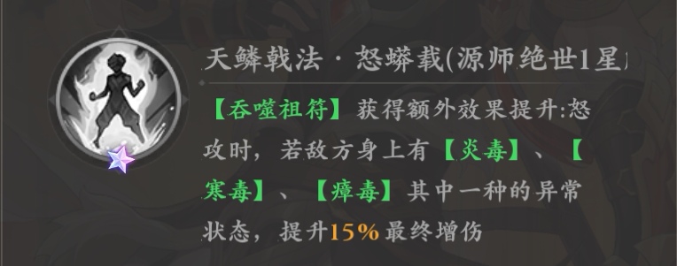 怒攻时,若目标有任意【毒】状态,则+15%最终增伤。