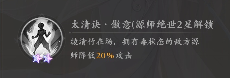绝2:敌方携带任意【毒】状态时,降低20%攻击。