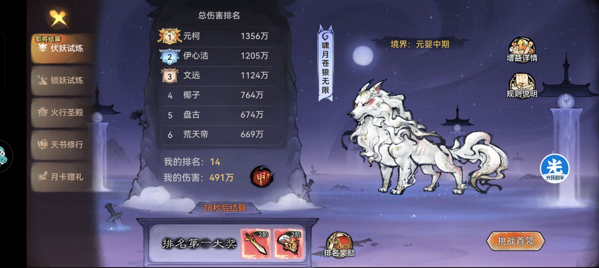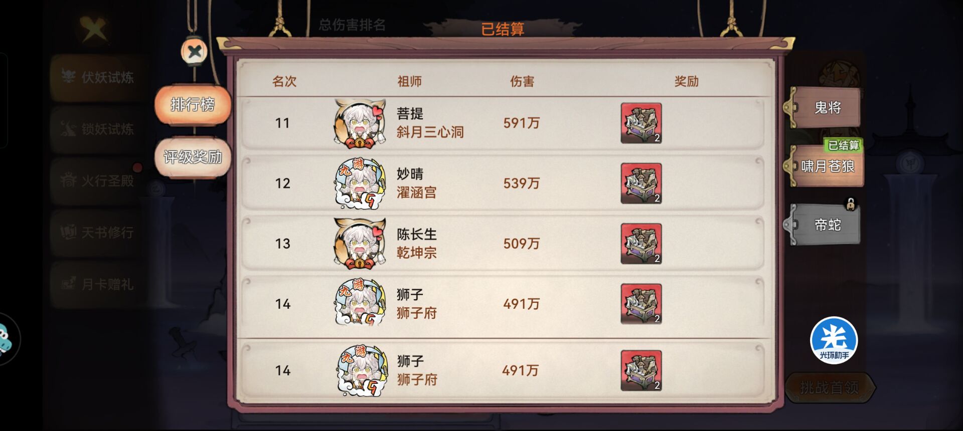 ②首先第2天是【啸月苍狼】结算,狮子拿到了第14名,伤害为491万。