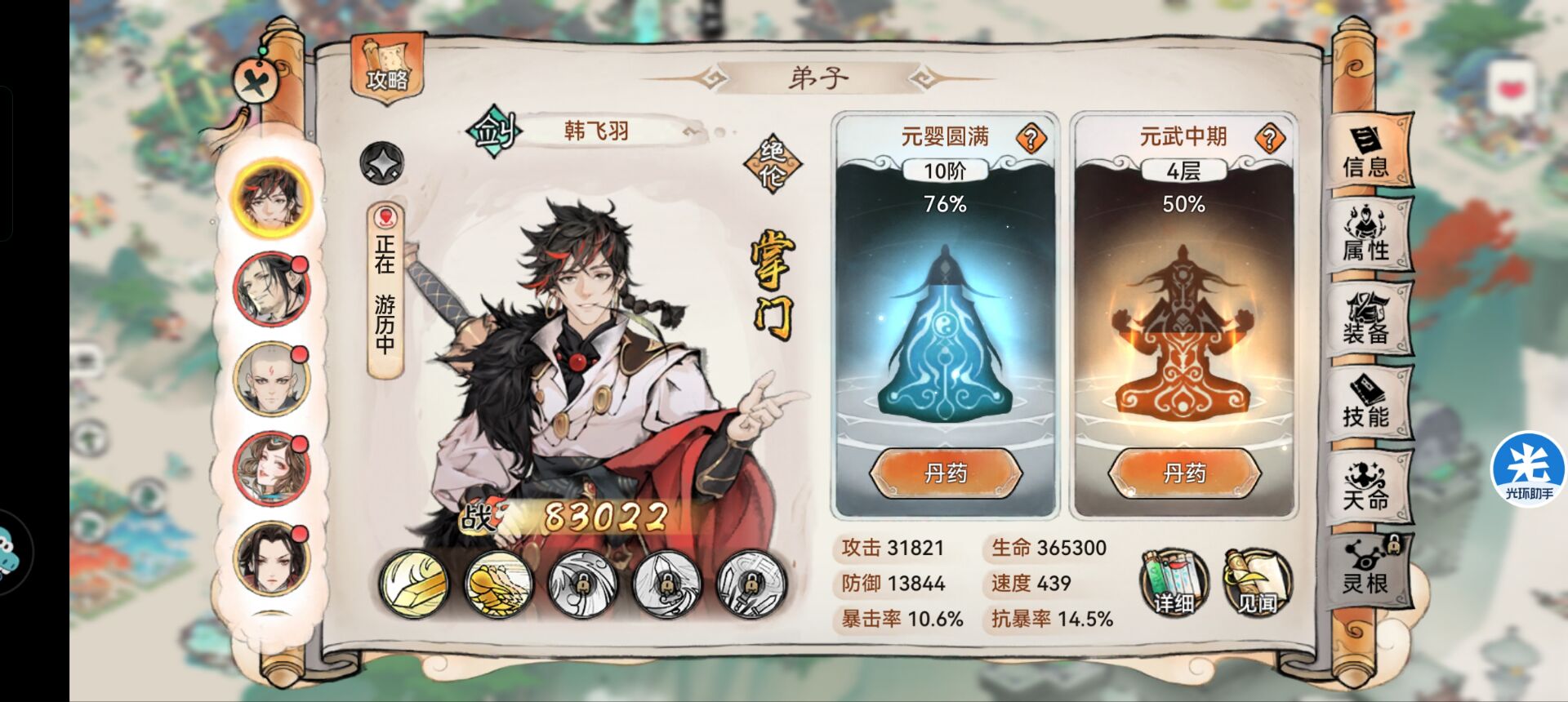 ④第三天尽量把2个输出都升到【元婴圆满】的境界/练体拉到【元武境界】。