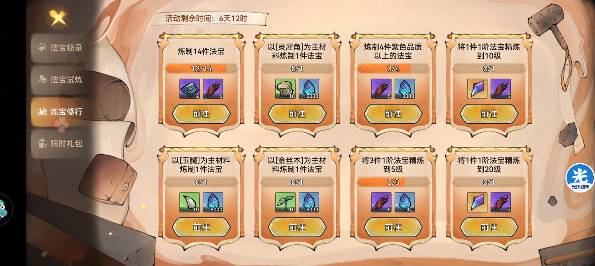 2:第三天—核心目标【法宝】。以上全部做完以后,就可以进入到我们锻造法宝系统了。