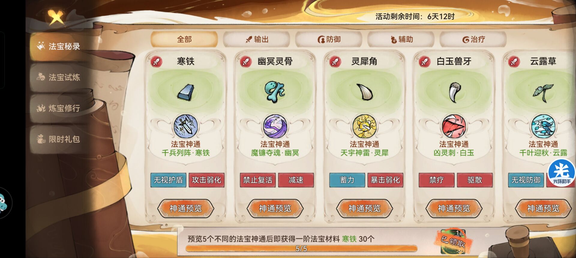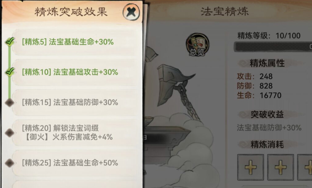 如果不了解法宝的玩家可以优先看系统的【法宝秘录】里面有每个法宝的详细作用和制作方法。