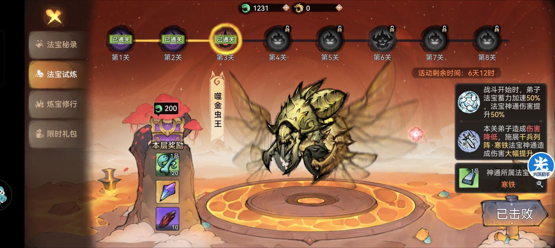 升到18级以后,就跟着主线走,就开启我们第三天的核心【法宝系统】了。