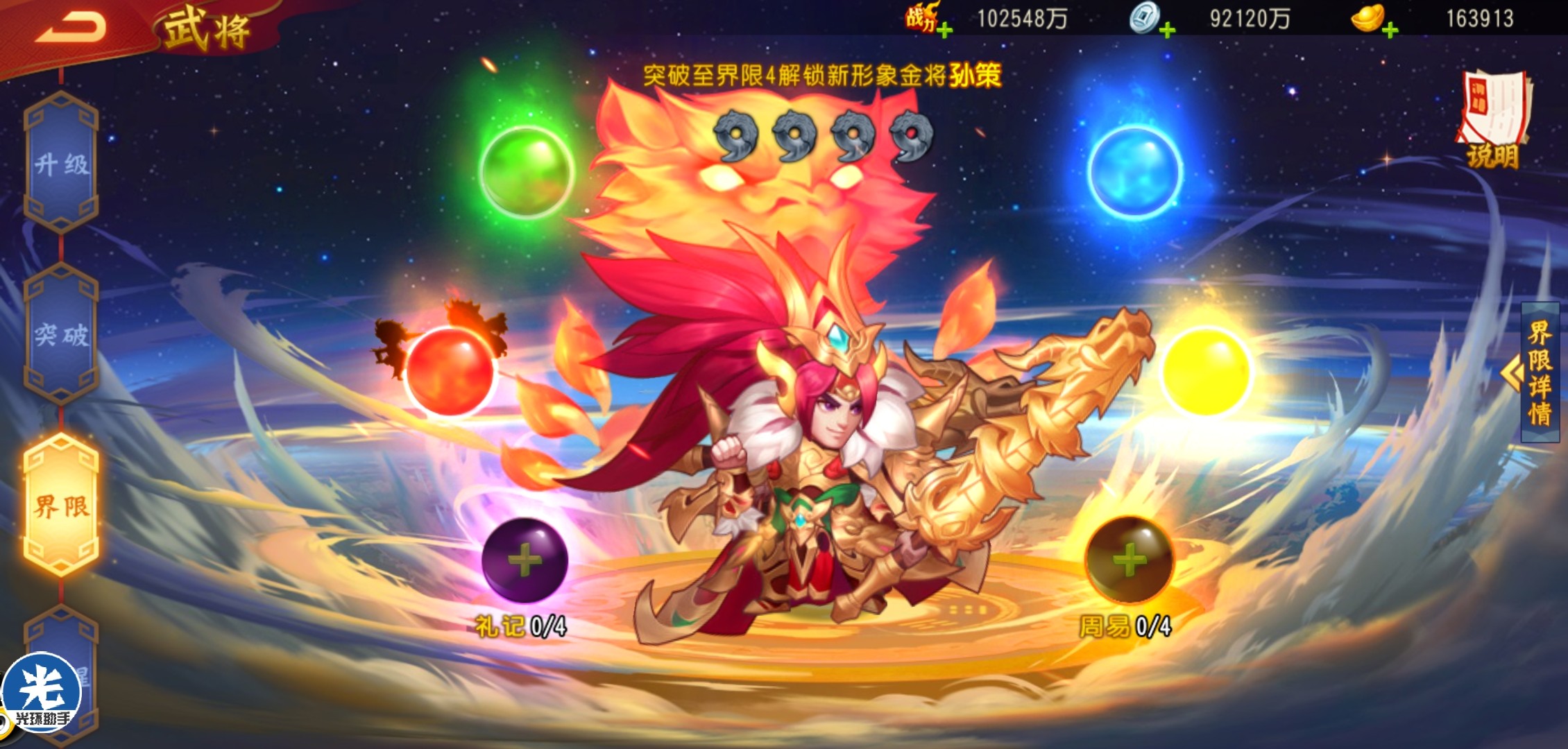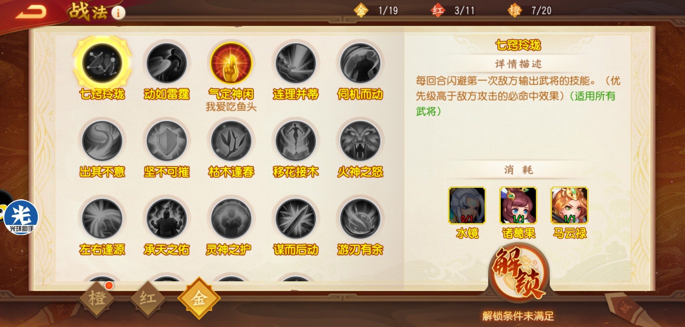 后期进一步提升金色战法,比如七窍玲珑、火神之怒,这需要金将,可以慢慢收集金将资源,顺便再激活天册。