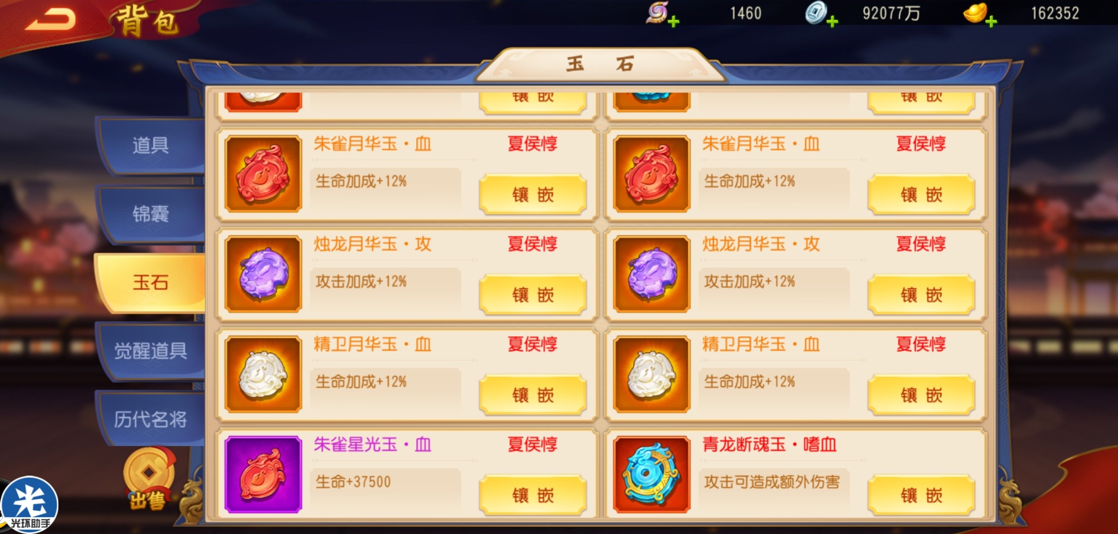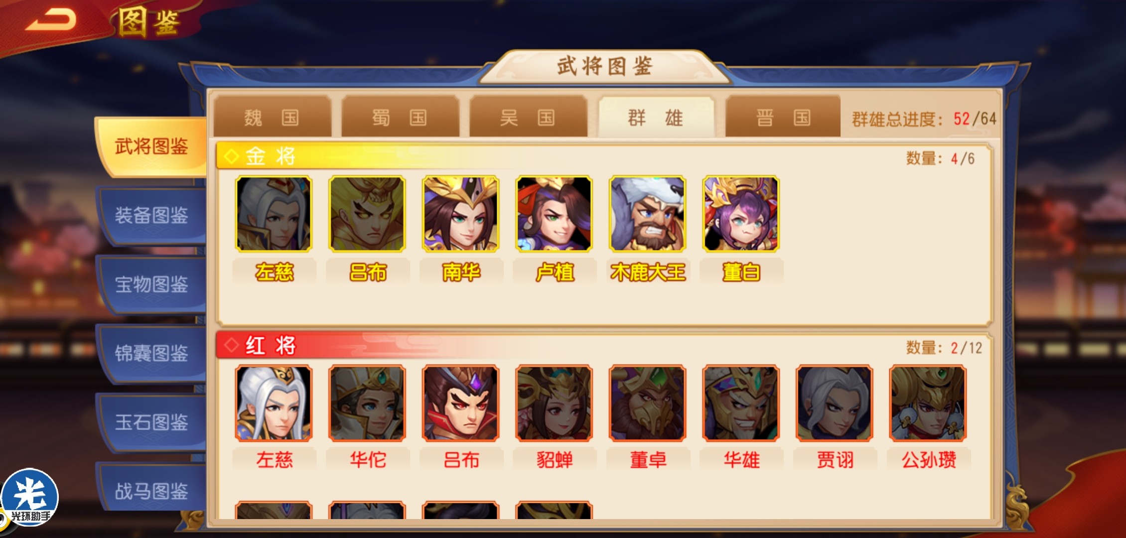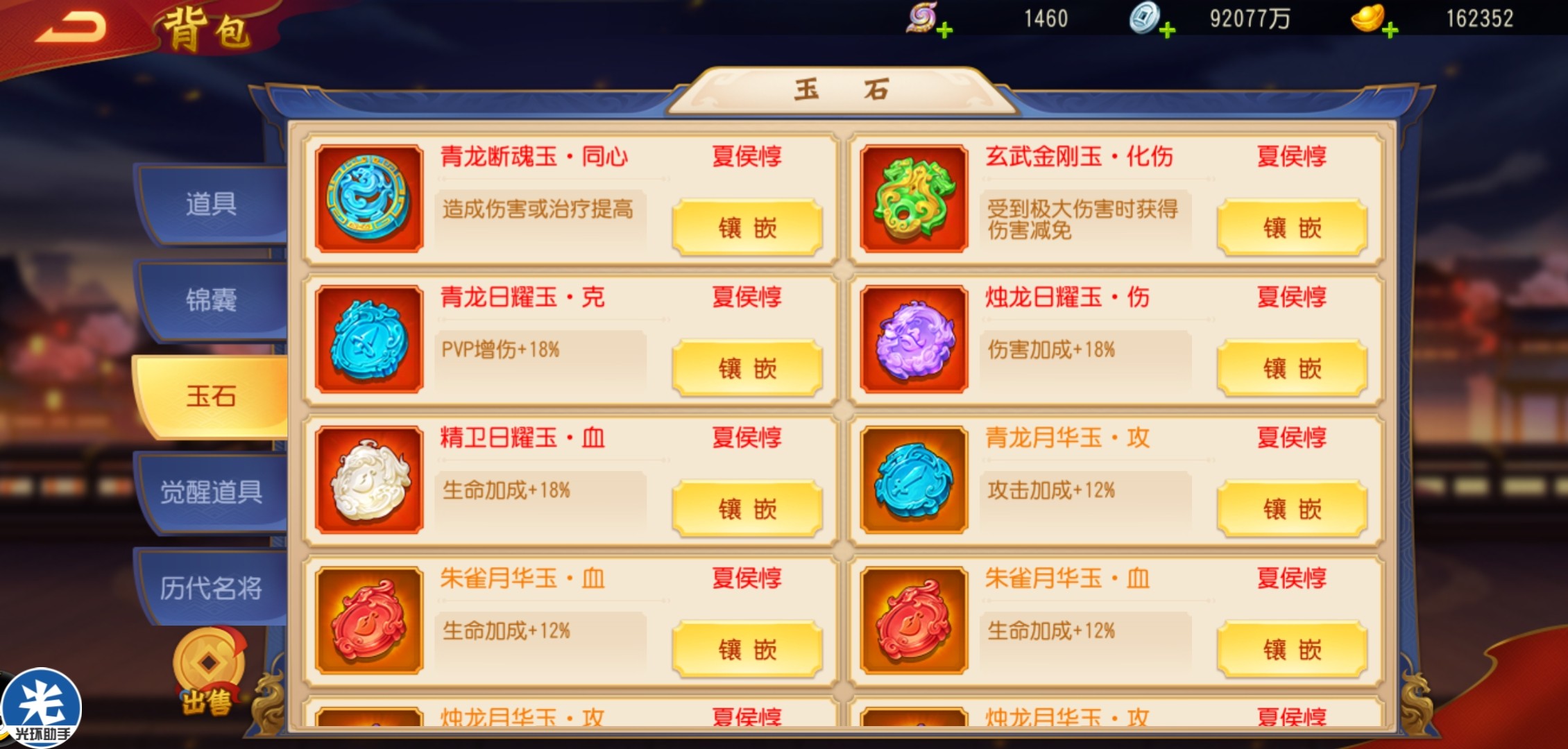 这样就来到上面视频的阶段。这个时期就是资源收集,名将、锦囊、玉石收集。