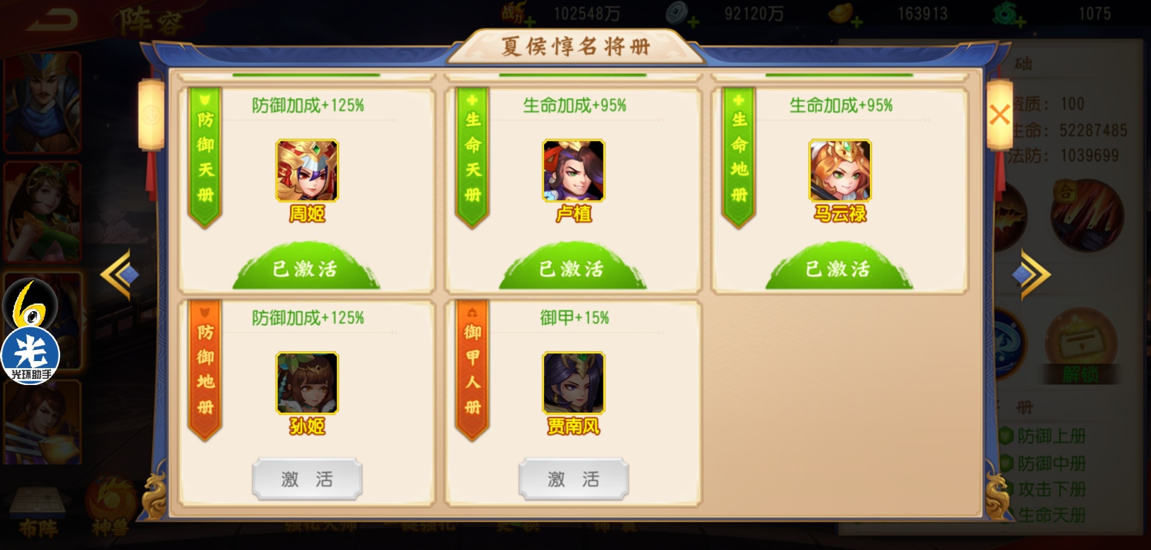 优先激活夏侯惇的生命天册,其他天册可以缓 能够激活晋国金将天册更好。