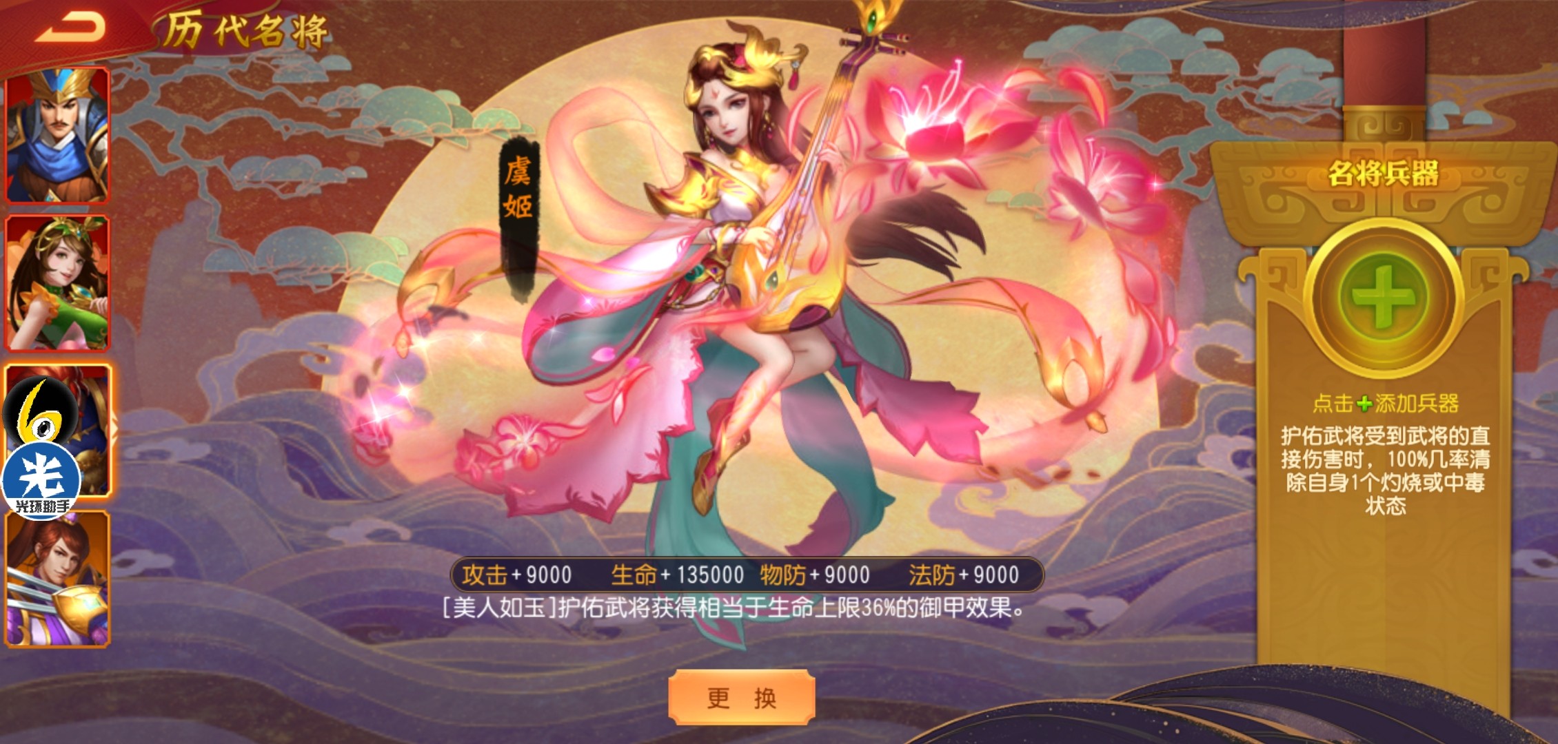 其次就是沐风、化雨等能够回御甲的玉石,御甲相当于第二条血量,历代名将虞姬的作用也是于此。