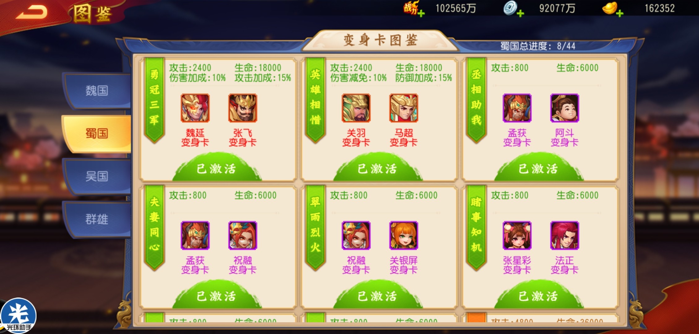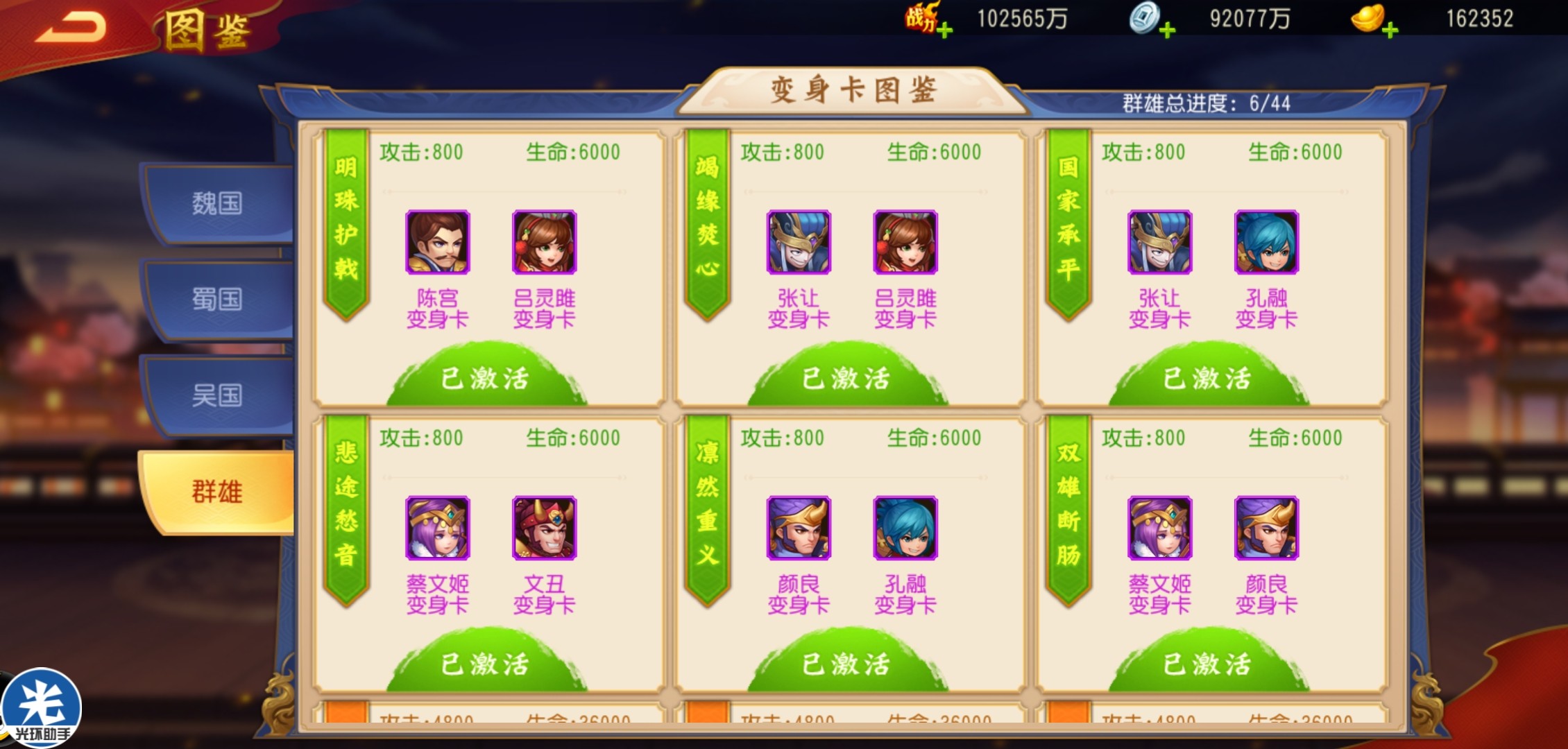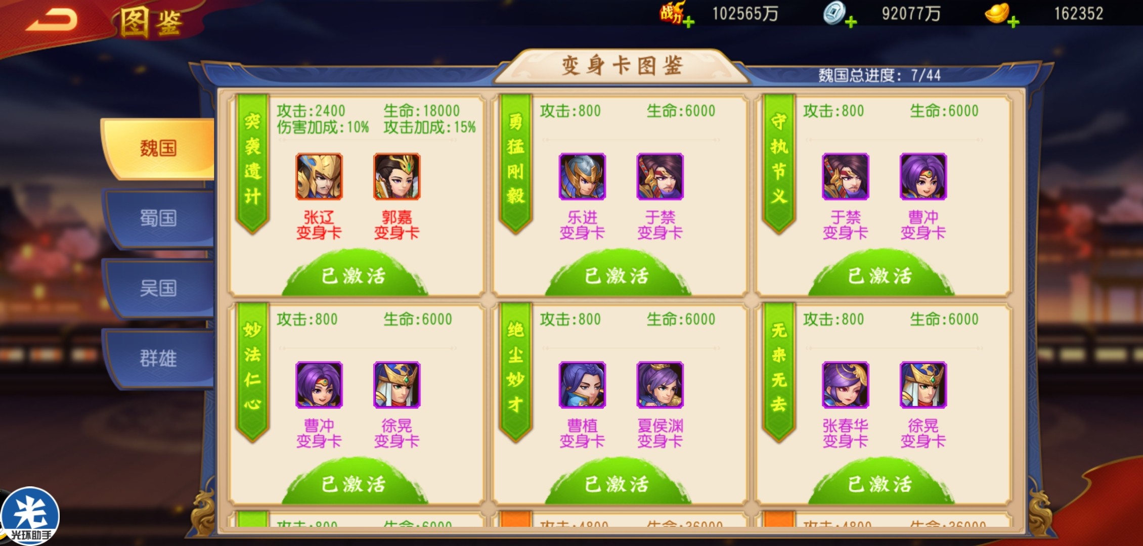 主角的培养主要还是变身卡,利用好变身卡,可以在张辽、张飞、关羽之间切换。