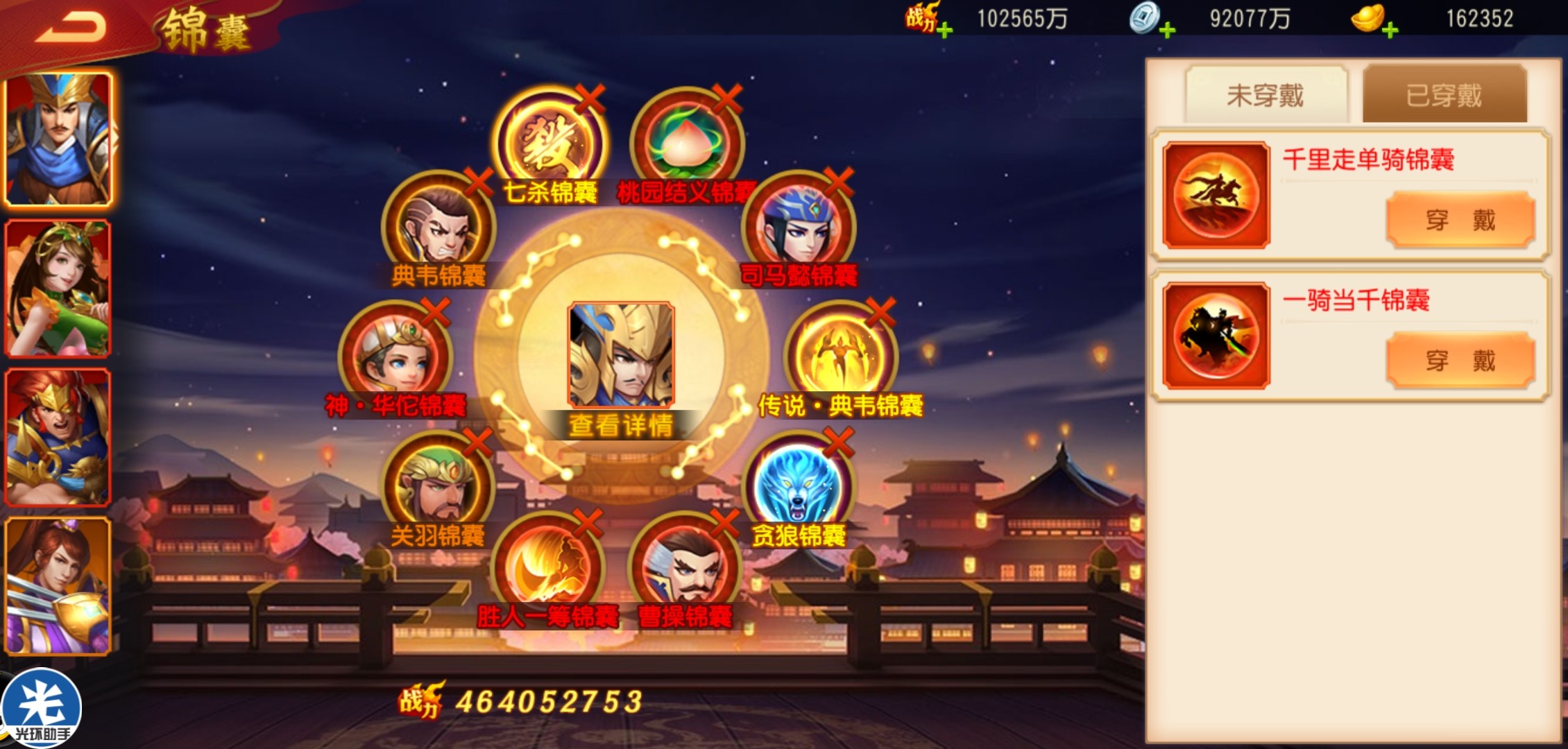 同时,主力输出武将张飞也可以佩戴上桃园结义锦囊,增强生存。其他炮灰及肉盾武将不佩戴桃园结义锦囊。