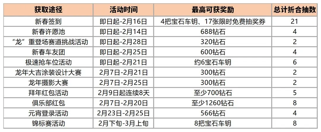 2月5日-2月24日可前往巅峰车展领取每日免费十连,2月25日-3月6日可领取免费1抽共10抽,车展有效期内将无门槛免费送出190抽!各位车手记得一定要上线领十连,记倒没得?