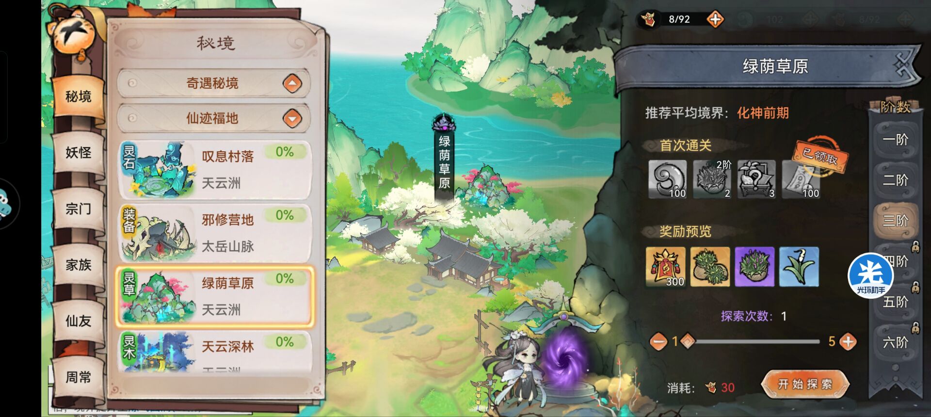 四:第六天核心目标:后山试炼和大岳除妖/伏妖试炼。接下来就进入到打副本和boss阶段,这个时候提升完弟子的境界然后把【仙途成就】领取还能提升一些战力。