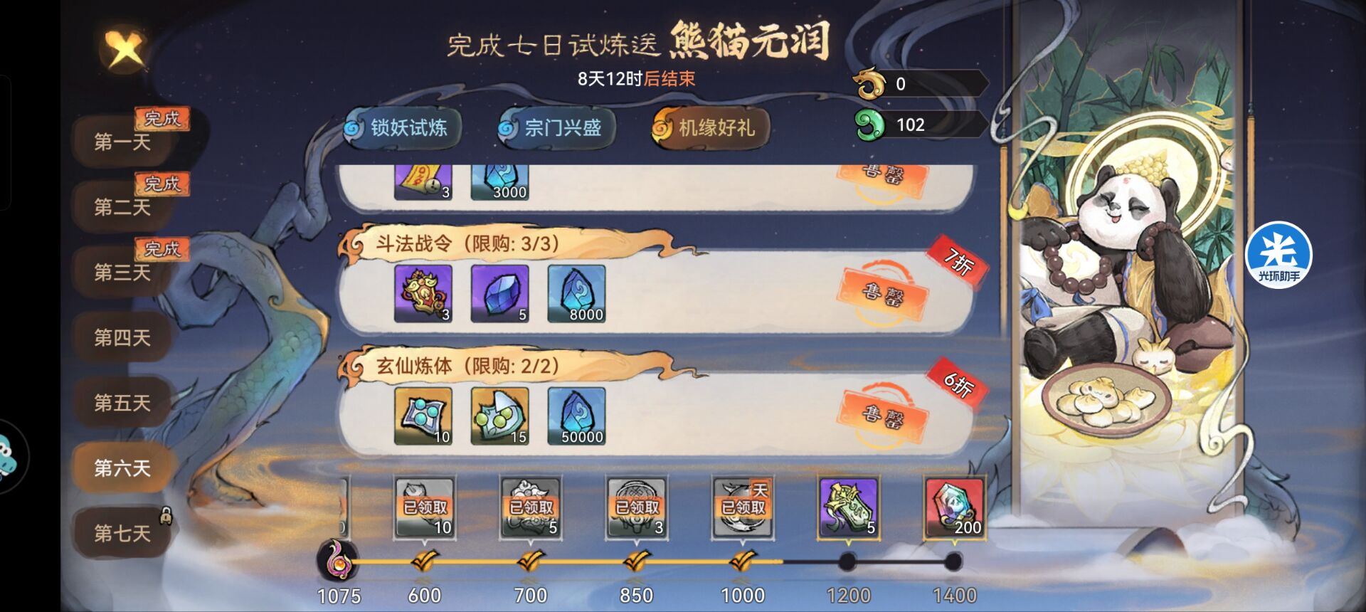 五:第六天—七日试炼购买建议。斗法战令和玄仙炼体如果需要的玩家可以买,性价比很高,很划算。