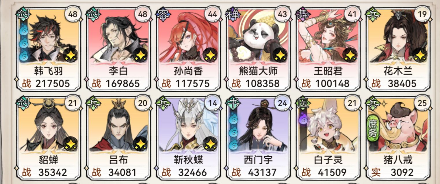六:第六天—最终总结。①弟子总战力:71万+。仙缘寻访心愿歪了秦冰,没办法,刚好暂时也可以放在前排抗伤。