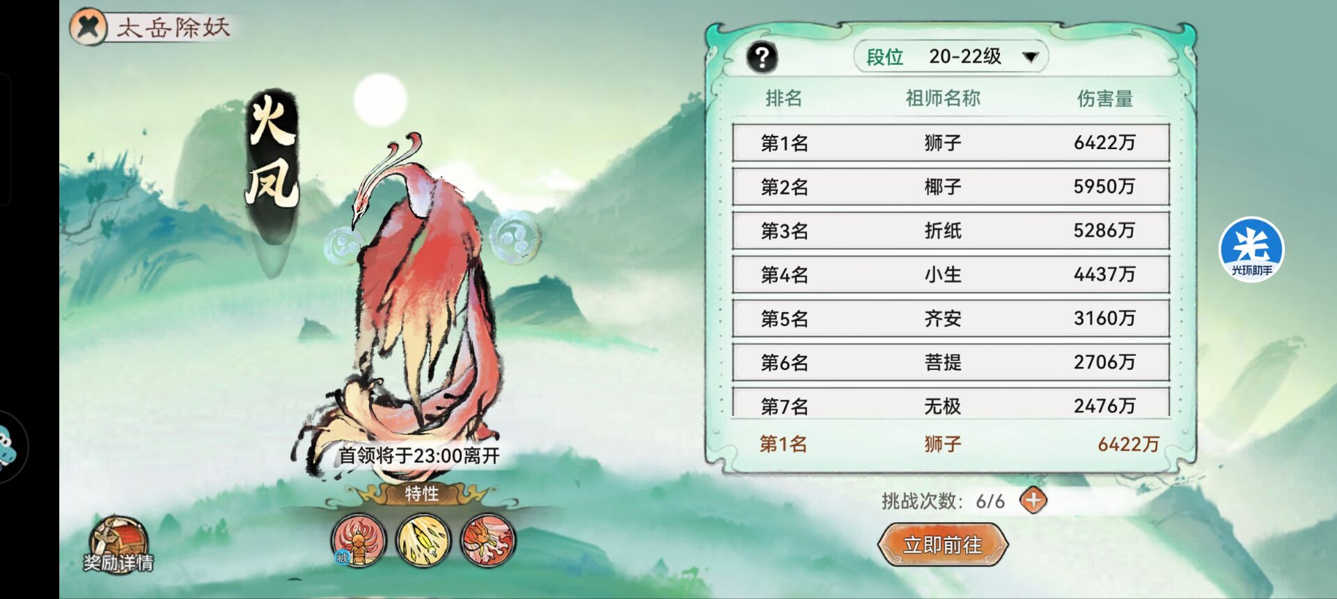 大岳除妖狮子这里也是失误了2次。伤害打了6422万。不然可以打7000万的。