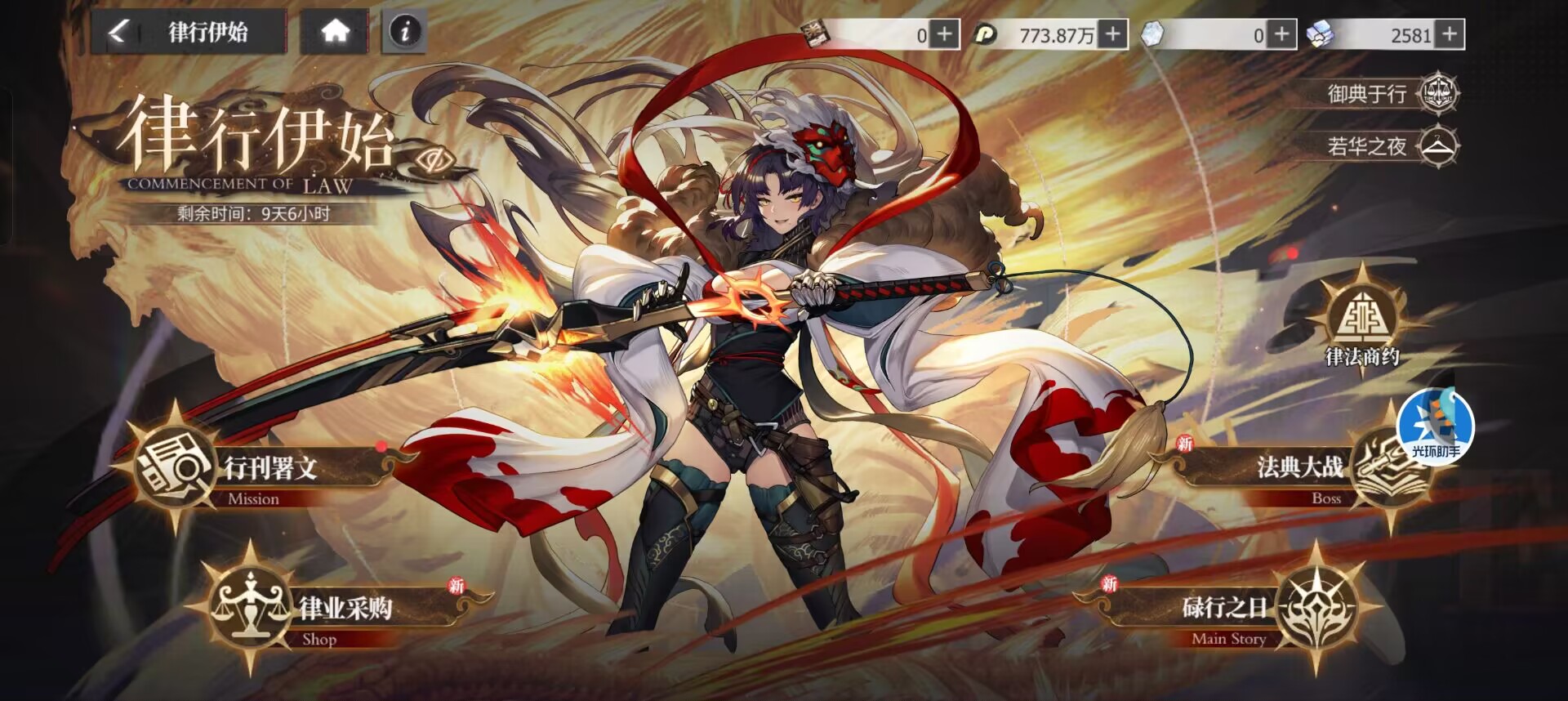 年底也是迎来了【律行伊始】的活动,同时也更新了全新角色【鵺】。