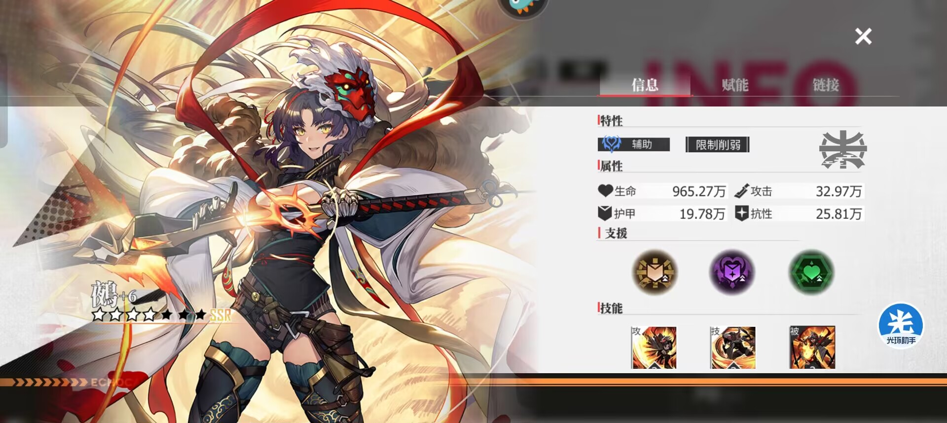 ⭐技能总结:可以看出鵺并非是传统意义上回蓝回血的辅助,而是削弱型百搭辅助,自身拥有回靠机制和清除敌人的增益,以及让敌人释放技能增加调率值的机制。