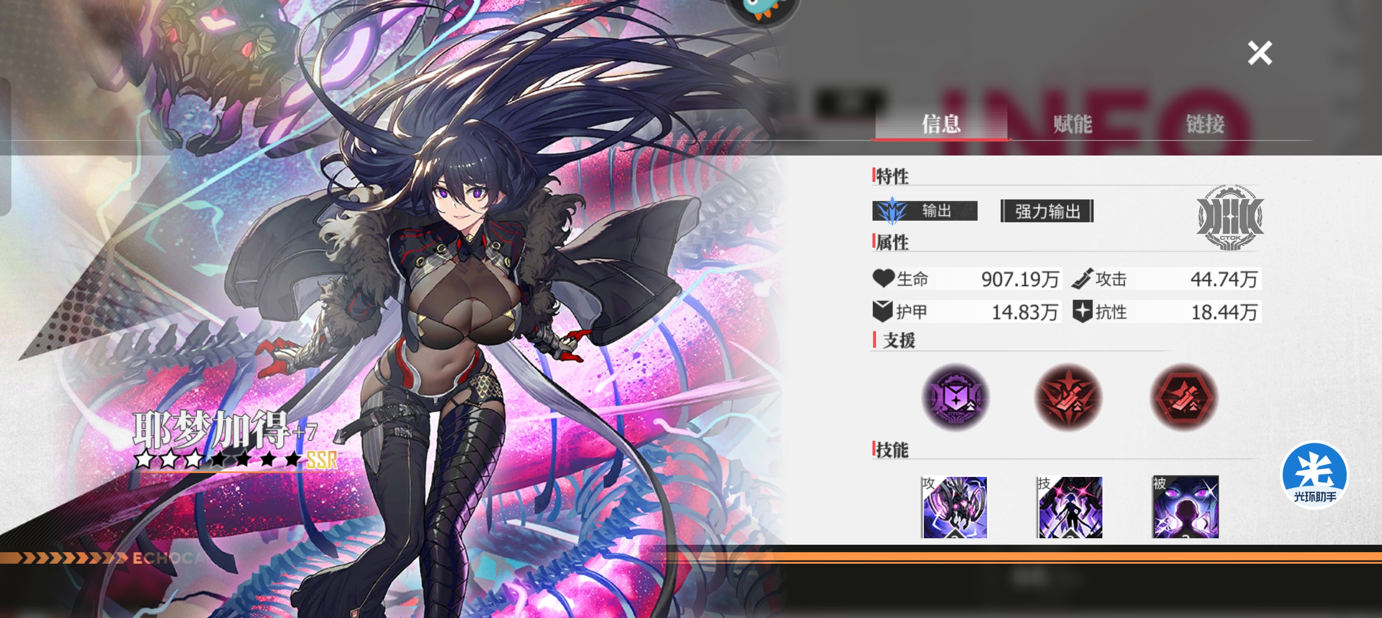 这个效果很明显就能够克制【耶梦加得】减少调律值释放技能,可以说是【耶梦加得】的克星了。
