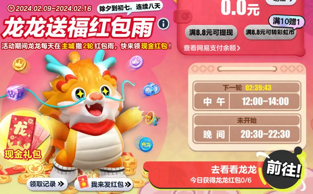 龙龙送福红包雨,8天海量现金礼包等蛋领