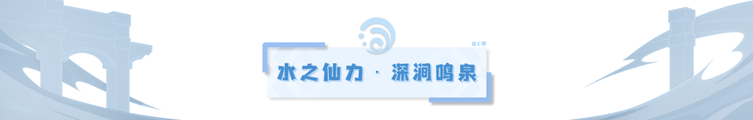 每60s施放一次。猊兽引身前进,毗邻场地中央,起而凝聚水之仙力:①凫于泉涧山谷间:猊兽在原地激起4次浪花,每次造成70%攻击力的水元素伤害;②悠然静心水鸣中:猊兽周围将随机不断地产生泉眼,每个造成70%攻击力的水元素伤害;③神尽水落谢幕时:猊兽将腾空进行甩尾击,在自身及周围6个区域降下涂炭怒涛,造成200%攻击力的水元素伤害;周围的水喷会击飞玩家,自身水喷则只击退玩家。水喷的爆炸半径比班尼特的圈大。