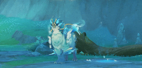 有时候,距离隐山猊兽过远时,隐山猊兽会拖泥带水的迅速游过来,此时隐山猊兽也会短暂附着水元素(不加抗),趁此时冻结+破冰就能立即瘫痪:须注意的是,起身时短暂附着水元素,但在行进途中就会失去水元素。过迟挂冰是冻不住它的。当即将汇聚仙力施放大招时,若其距离场地中心过远,则也会这样游到场地中央。