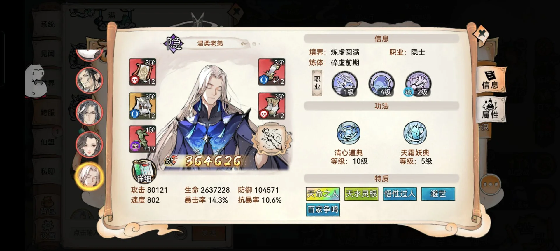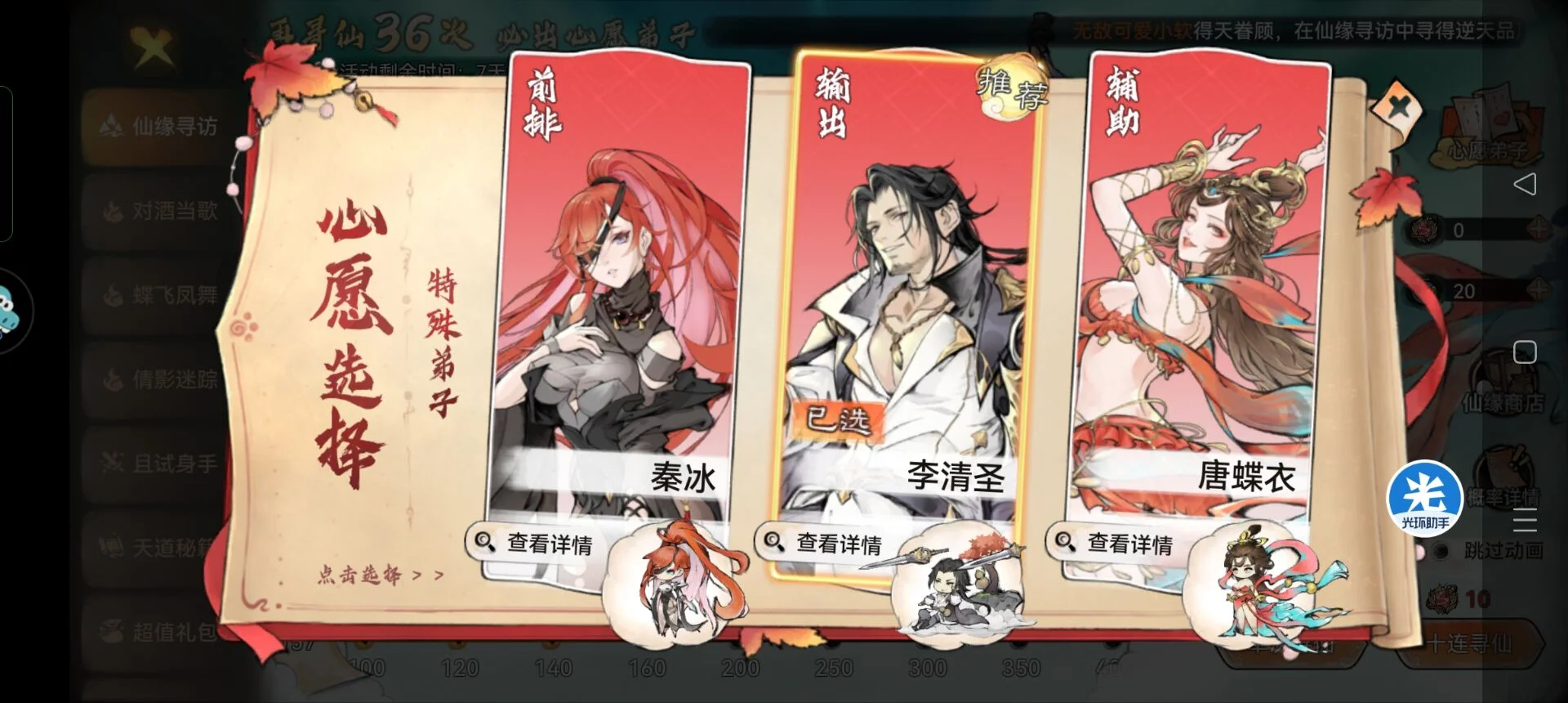 主要有两点原因:①第一点原因就是我们平民玩家很难去养成多个【仙缘寻访的逆天弟子】。所以我们要专注培养一个逆天弟子,那就是【李清圣】。主力输出的李清圣是我们培养的核心弟子。所以其他没有李清圣的仙缘寻访都不参加。