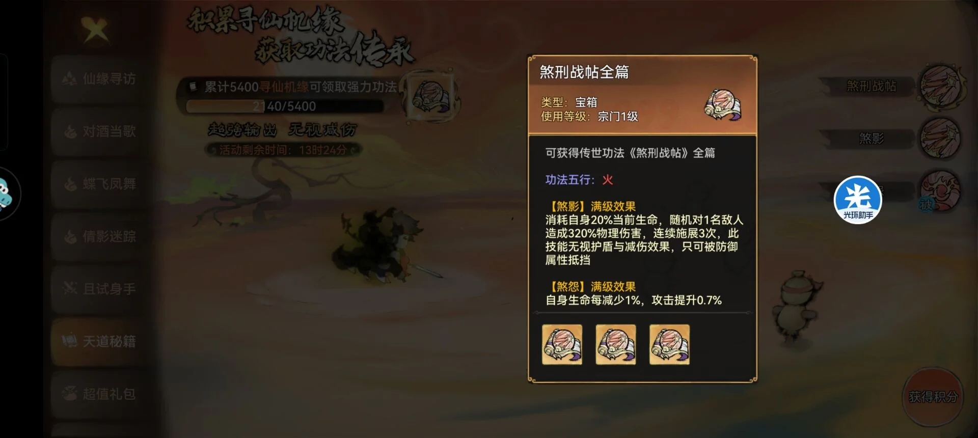 那么【仙缘寻访】里面的橙色功法毋庸置疑是非常强力的。