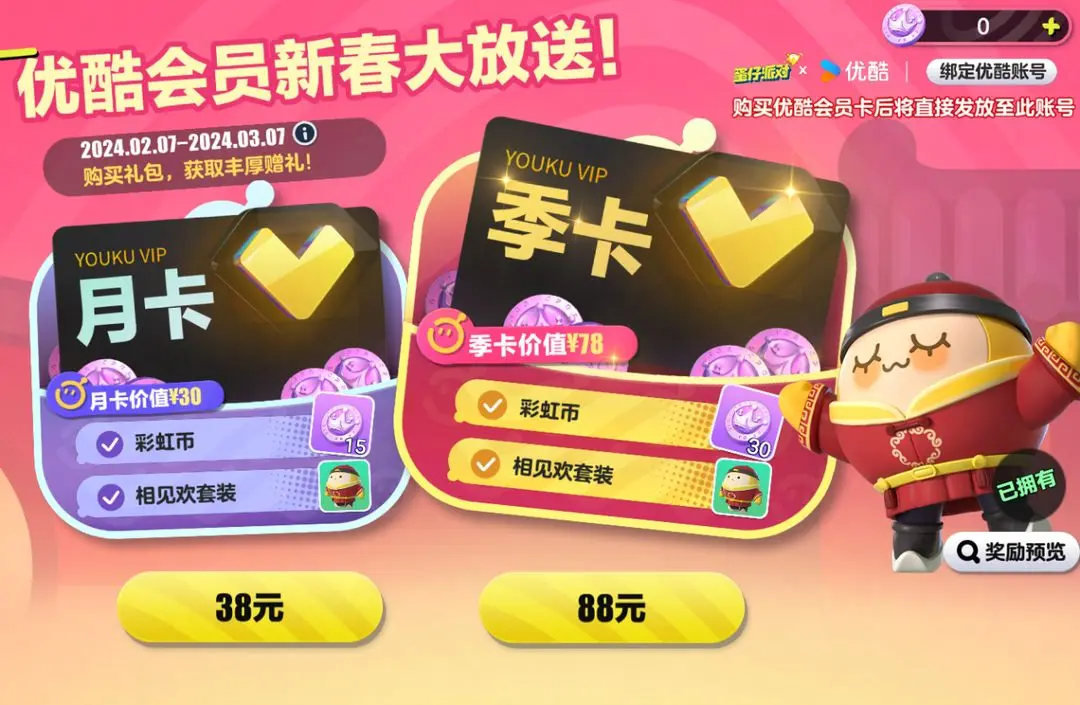 蛋仔们需先在活动界面内绑定优酷账号再购买 购买后会员权益将直接发放至绑定的账号