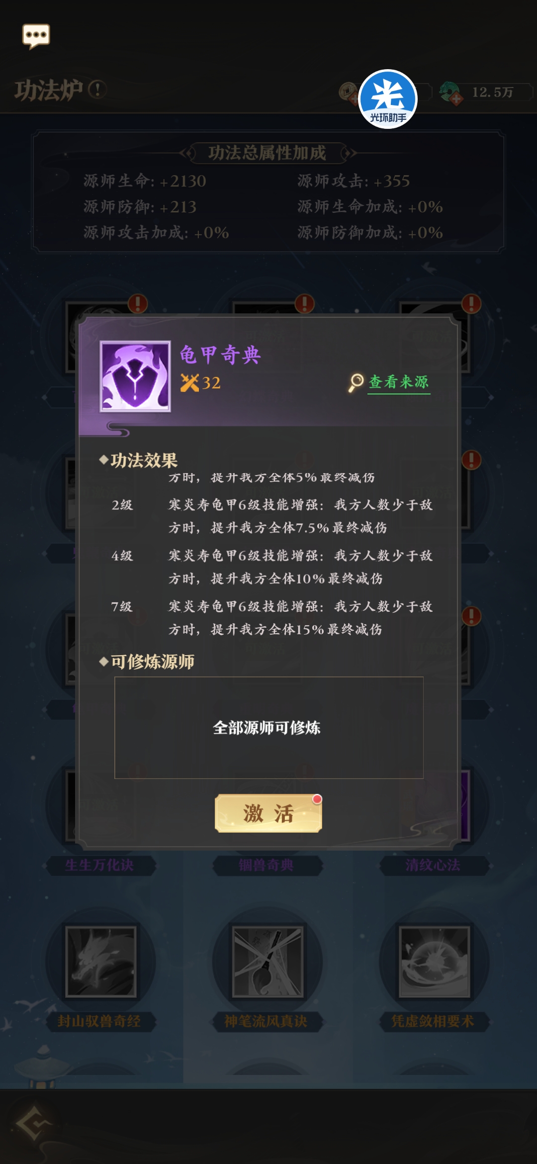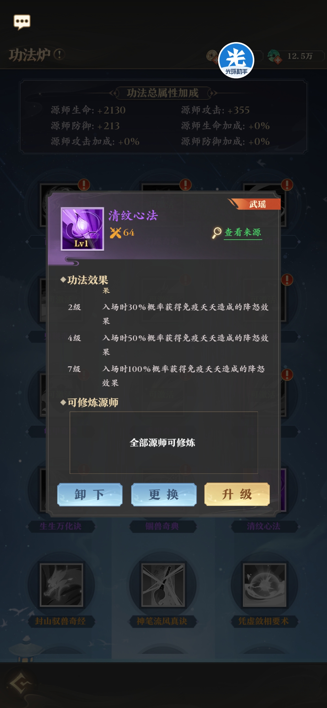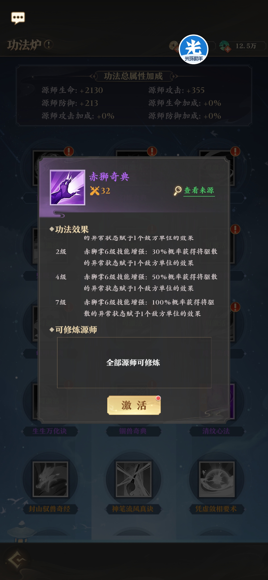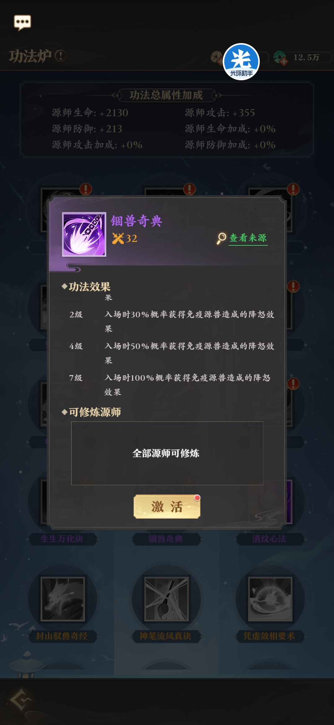 所有源兵均有专属功法,来强化源兵的效果。