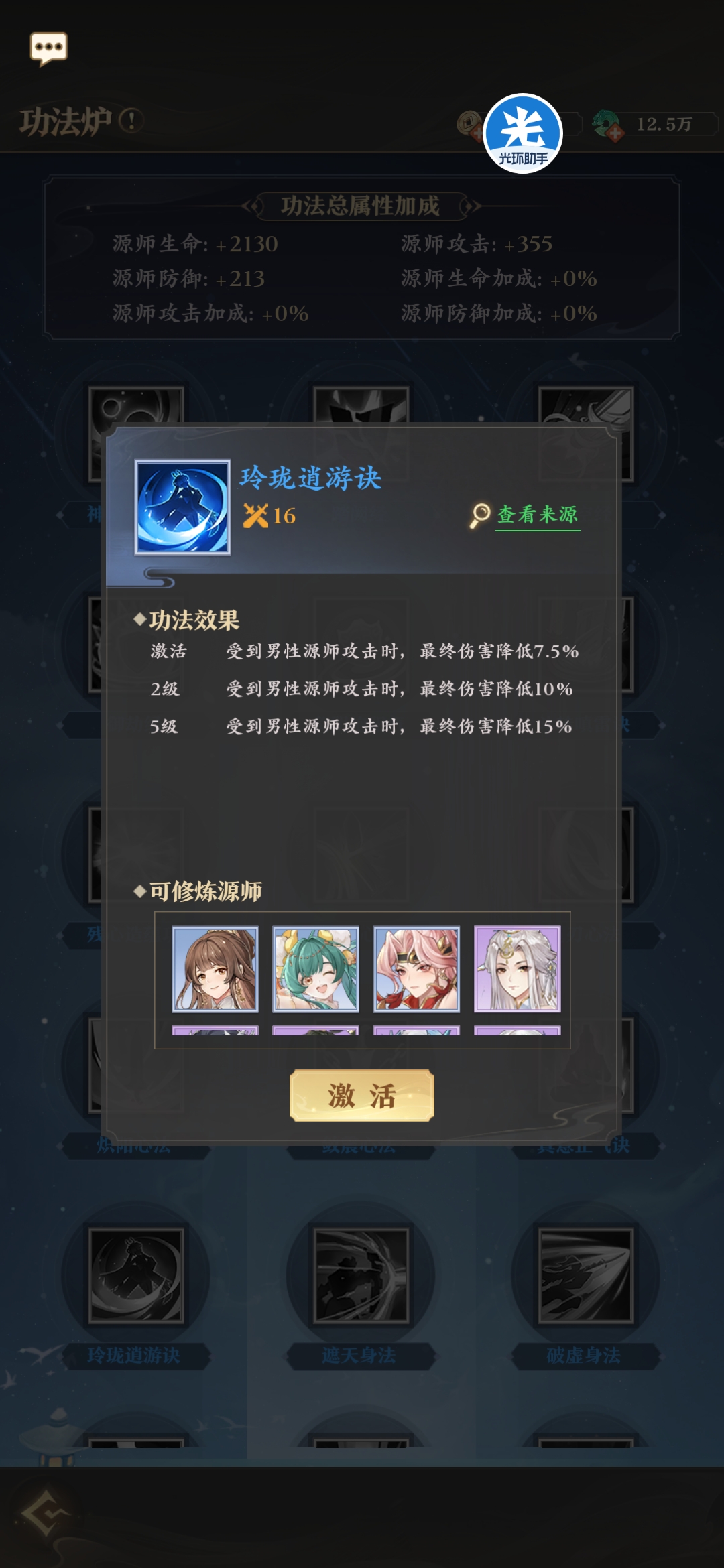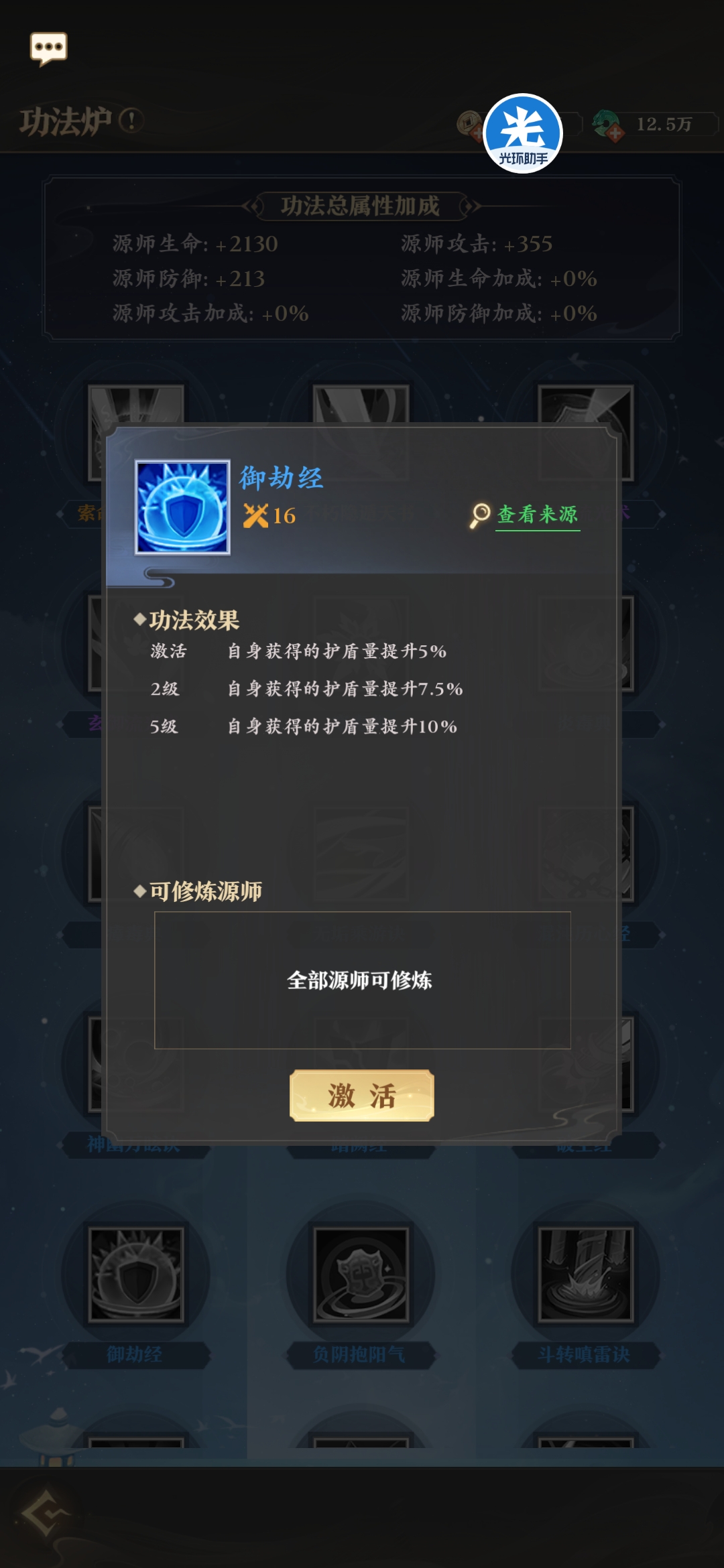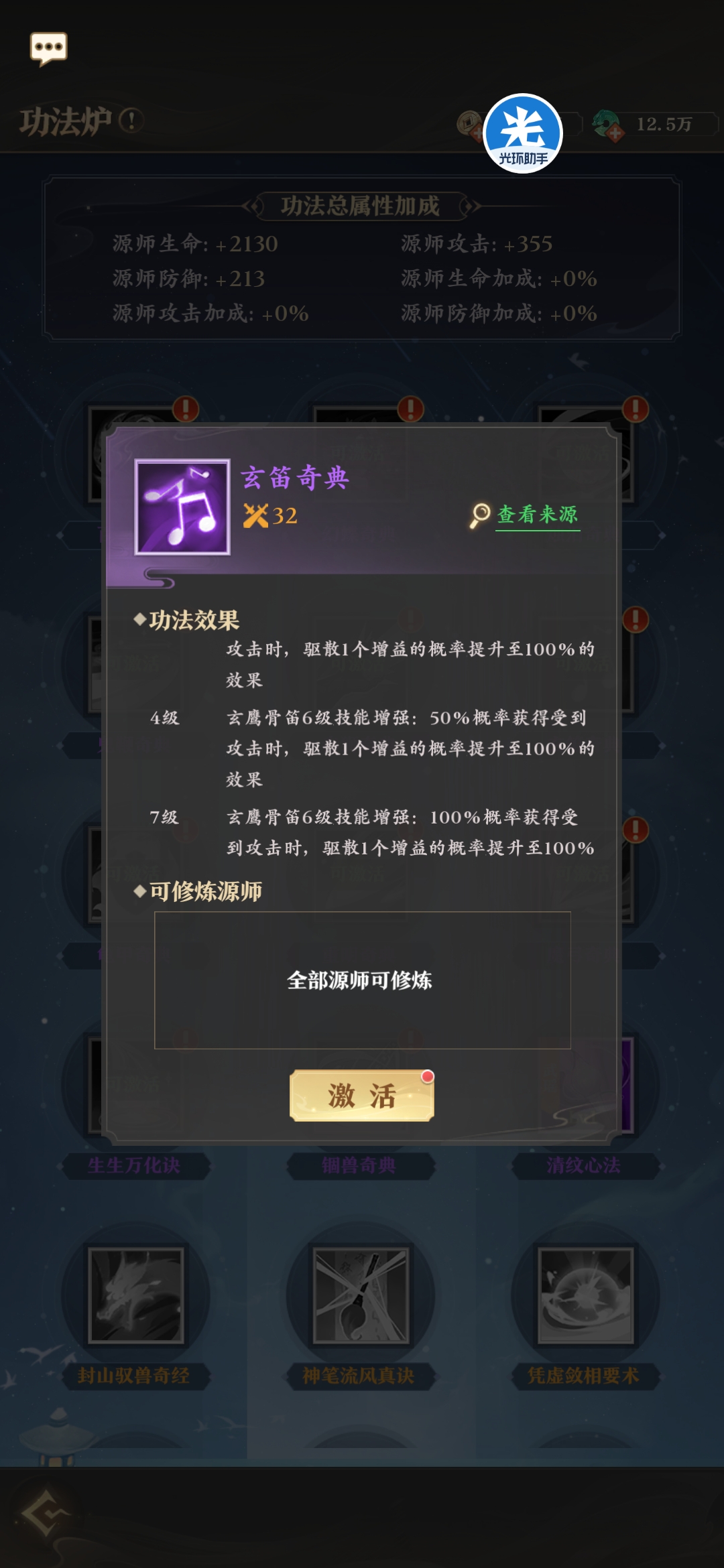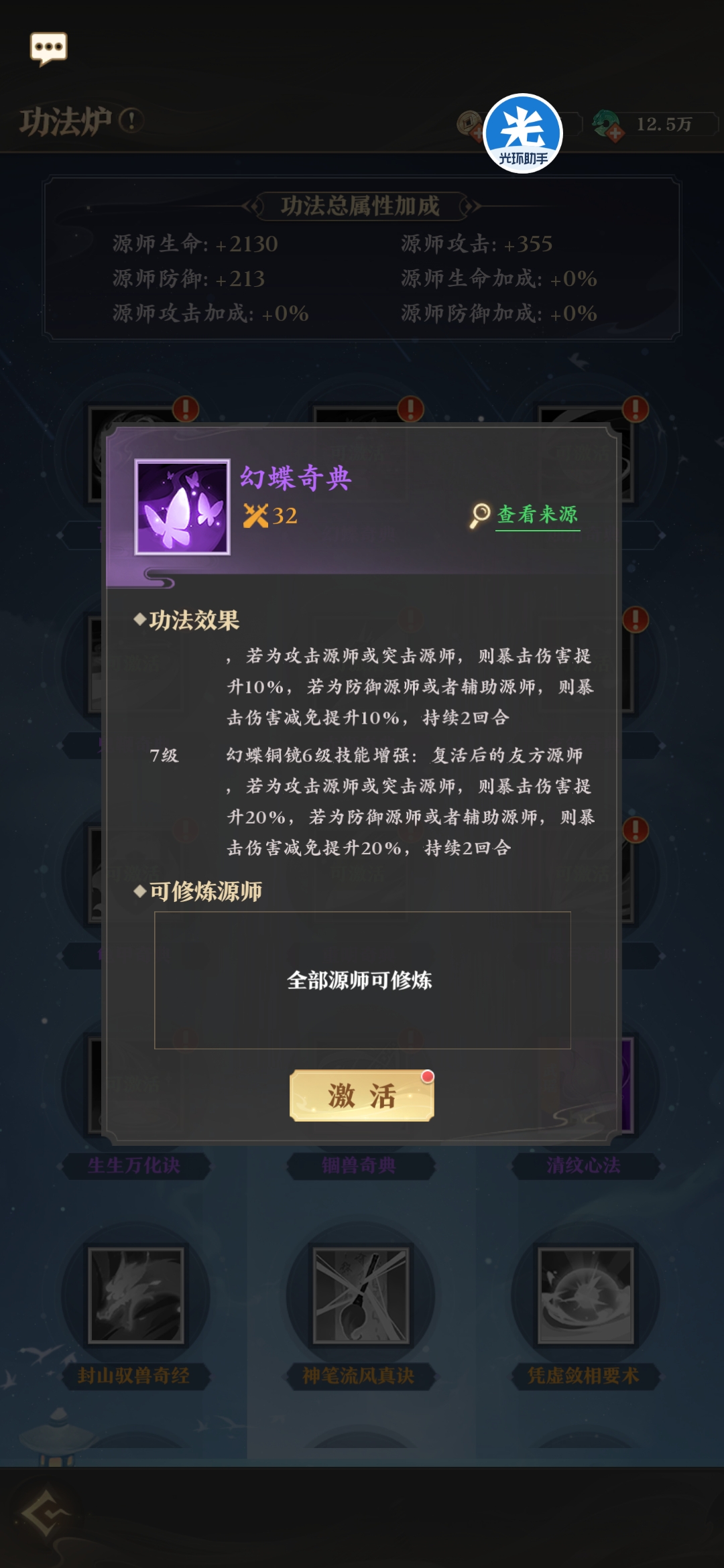 所有源兵均有专属功法,来强化源兵的效果。