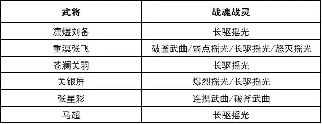 魂将:凛煜刘备3火启用(5火最佳)、重溟张飞1火启用(5火最佳)、苍澜关羽3火启用(5火最佳)