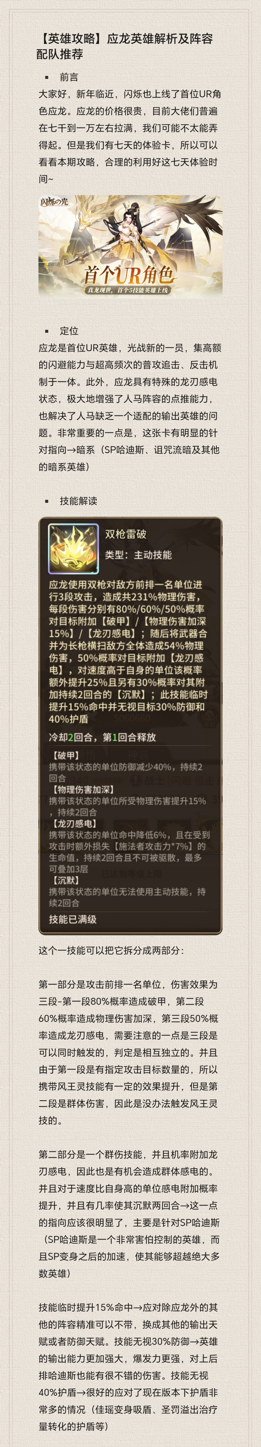 【英雄攻略】应龙英雄解析及阵容配队推荐
