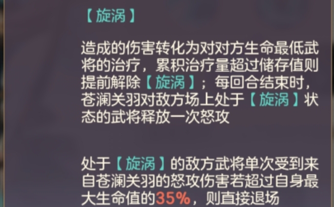 根据【清泉】【腾流】的层数对【旋涡】武将追击怒攻具有强大的减员退场能力