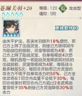 关羽后宫第二个灵宠助战位,首选青鸾,队伍中需将苍澜关羽调整为一攻,青鸾开局给山盟,以保证苍澜关羽的生存。后宫的强度很大程度上与关羽的生存相关。