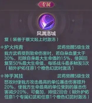 蔡文姬:白嫖天花板,低廉到0的养成成本,极大地加快了女团的成型速度。蔡文姬的功能性非常全面,幻武提供的免死效果,无论是在pvp还是在pve中,都极大地提高了蔡文姬的作用。