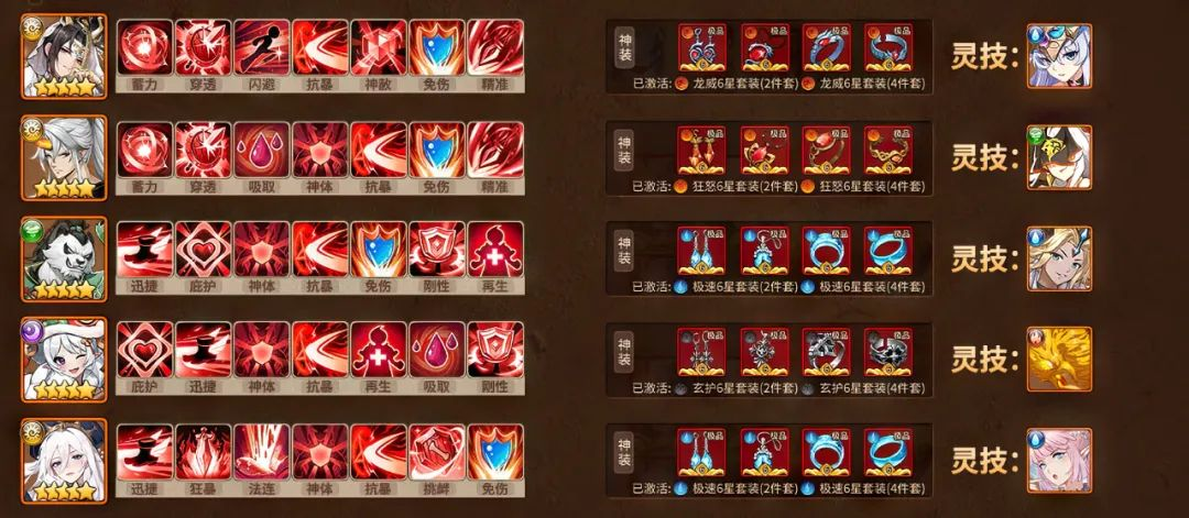 利维坦-灵·鲛影:提升暴击率,在神装未成型的情况下可以给暴击率兜底,弥补不带狂暴天赋的不足;此外出手时驱散自身负面的机制也与应龙非常契合。
