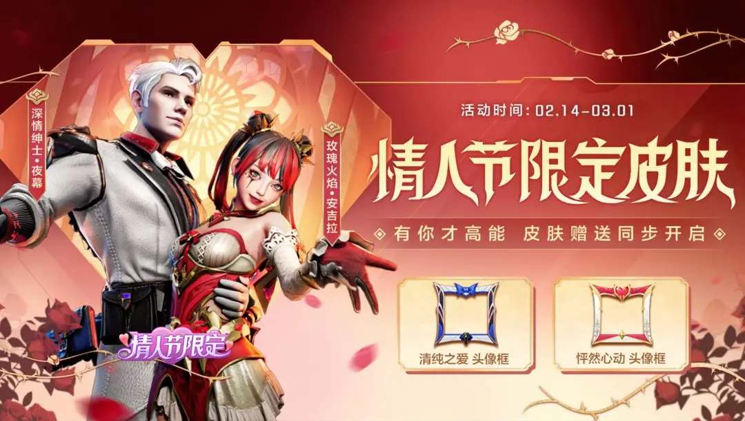情人节限定皮肤今日上线,皮肤赠送同步开启 高能英雄首次情人节限定皮肤