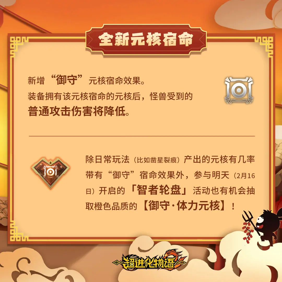 在明日开启的「智者轮盘」活动中,有机会直接抽取橙色品质的【御守·体力元核】( •̀ ω •́ )✧
