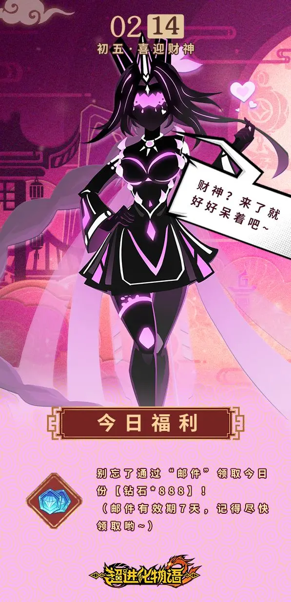 大年初五,当然要迎财神┗|`O′|┛ 嗷~~今日份的【钻石*888】红包已经准时送达啦!别忘了领取哦!