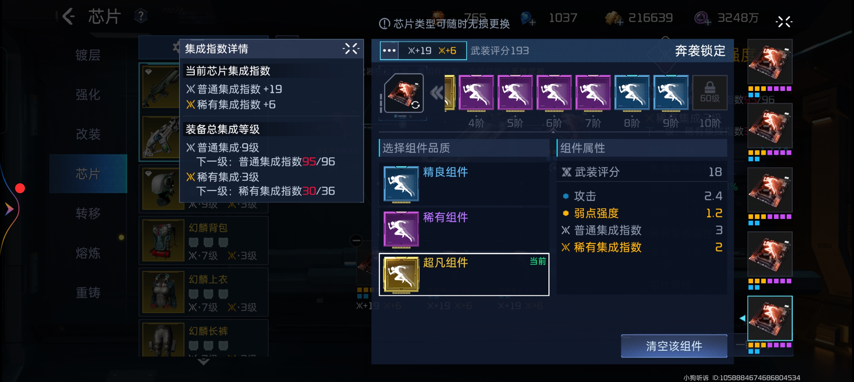 4:装备芯片—组件。60级的装备芯片也是我们准备工作的大头,因为60级是开放10阶芯片槽位了。而填充10阶槽位每次都需要90个组件。很多玩家都是不够的,所以我们组件要提前准备好。