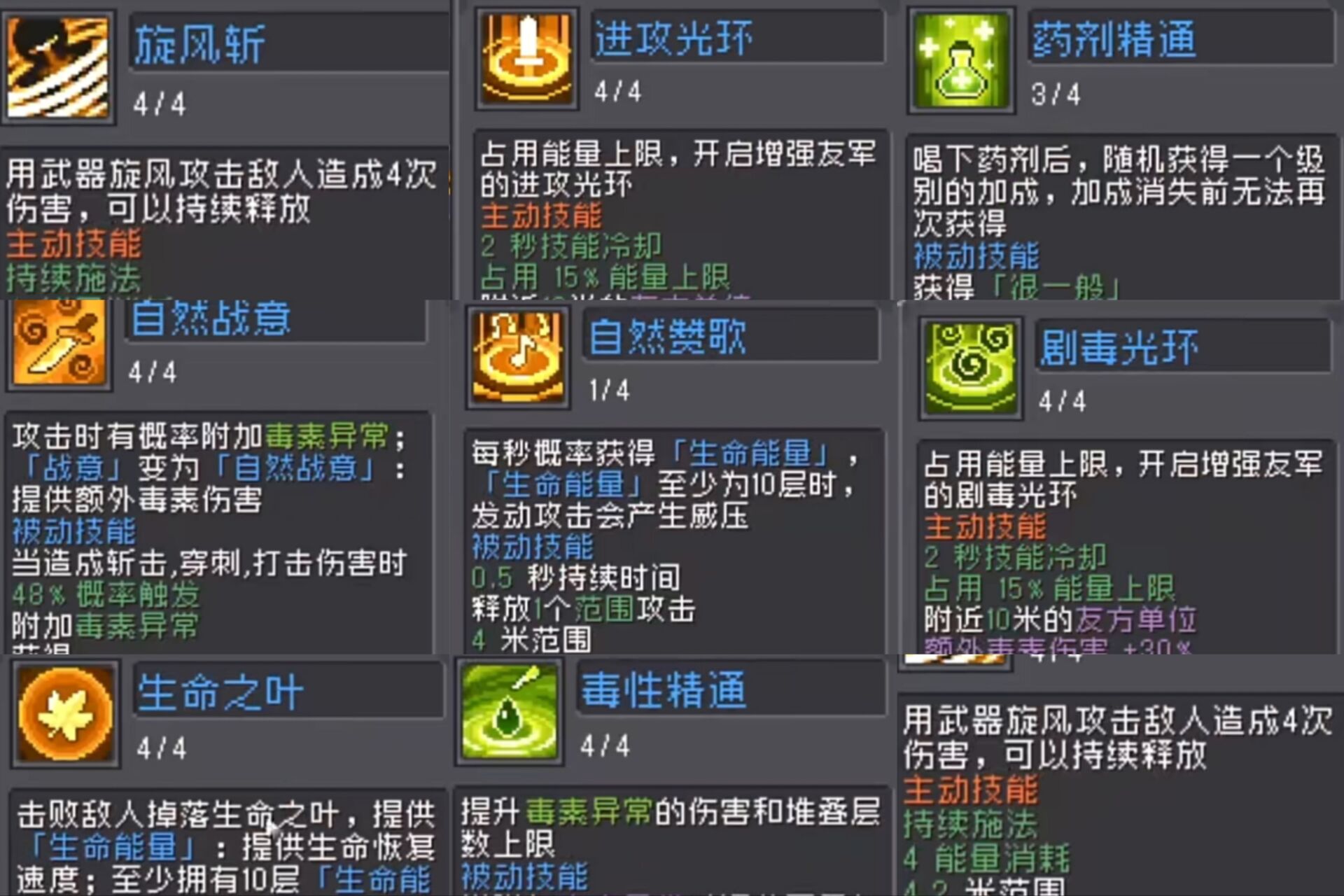自然战意加满,可以提供毒素异常配合厄运羁绊和毒素精通以及剧毒光环,毒素伤害大幅度提升!