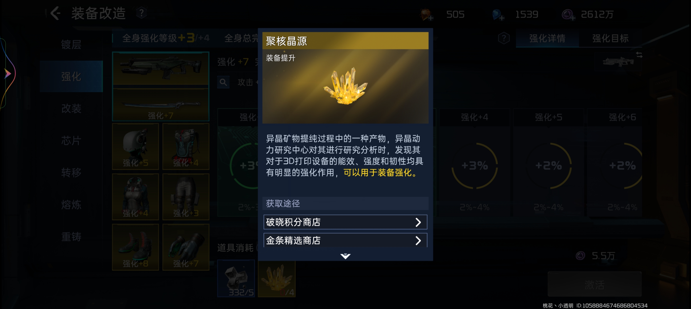二:装备强化如何规划?首先装备伤害需要消耗我们的【聚核晶源】。
