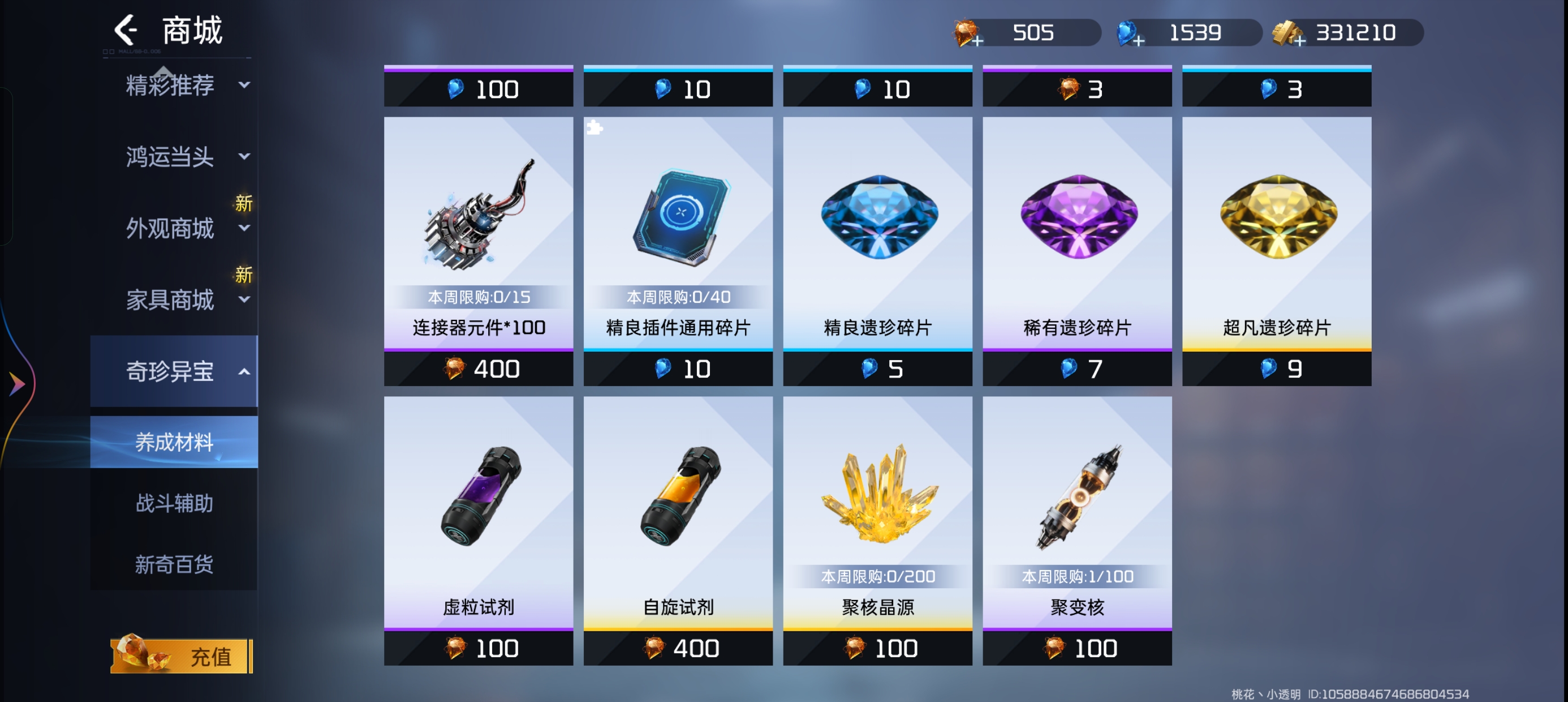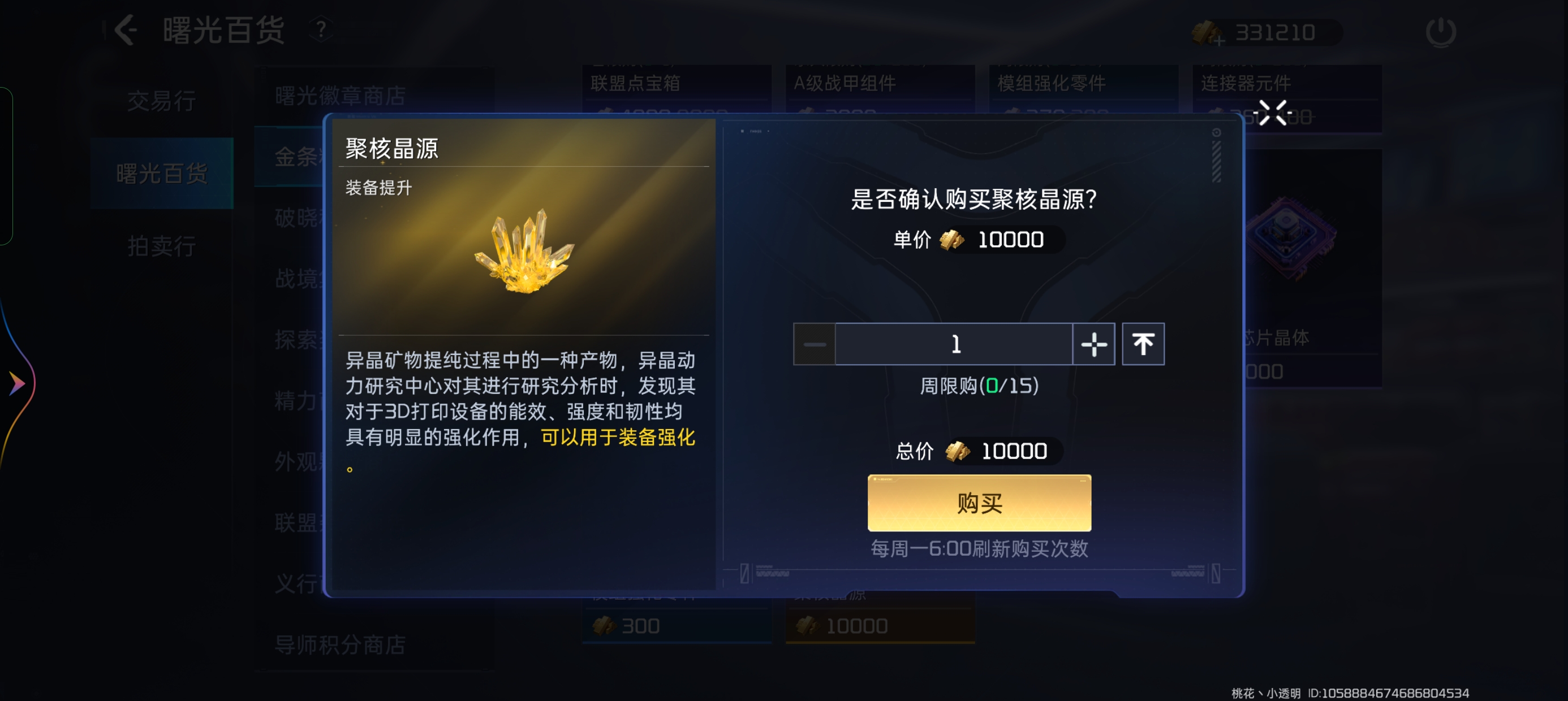 ⭐目前想要获取大量的【聚核结晶】主要获取方式还是从【商城】中获取,所以完美强化也只能是氪佬去碰的。