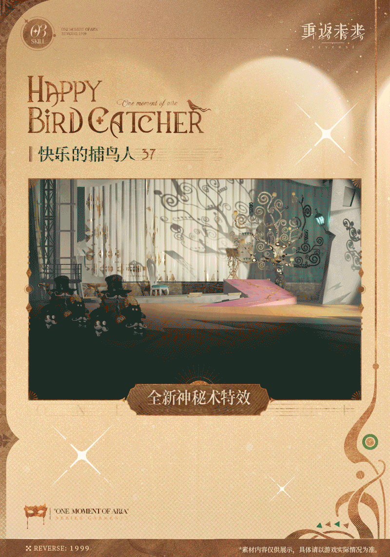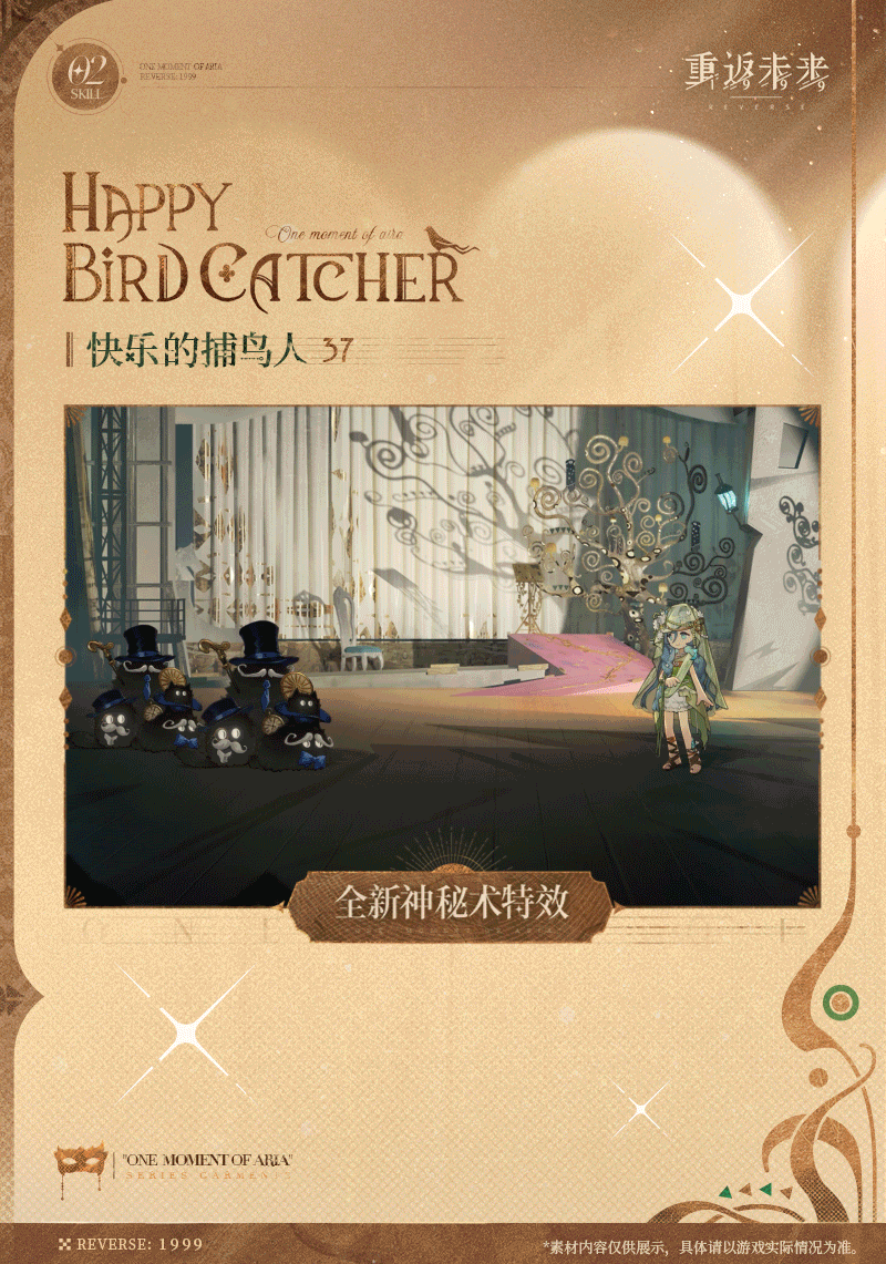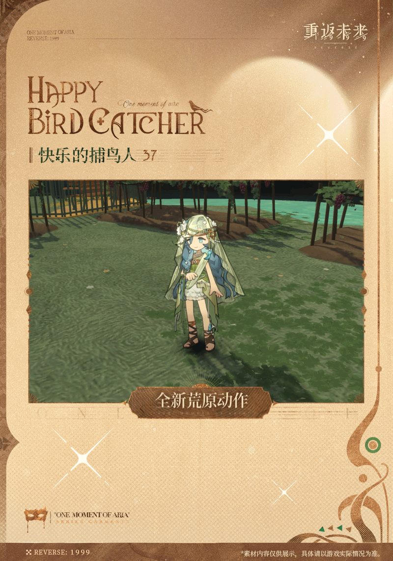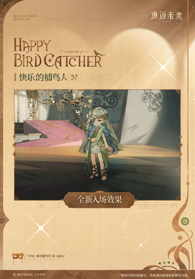 【衣着上新】37 | 快乐的捕鸟人光环资讯 - 二次元发布于 2024-02-19关注//衣着上新快乐的捕鸟人 | Happy Bird Catcher*咏叹的瞬间*系列,37全新衣着。嘀,嘀,嘀,嘀嘀哒啦! ★衣着宣传折页★※全新神秘术特效※崭新形象※全新Live2D交互动作×2※崭新单品×3※全新入场效果×1※全新荒原动作×1★获取途径★2/22 版本更新后 — 4/11 4:59,37全新衣着「快乐的捕鸟人」将在【衣着风尚】商店上架并限时售卖。