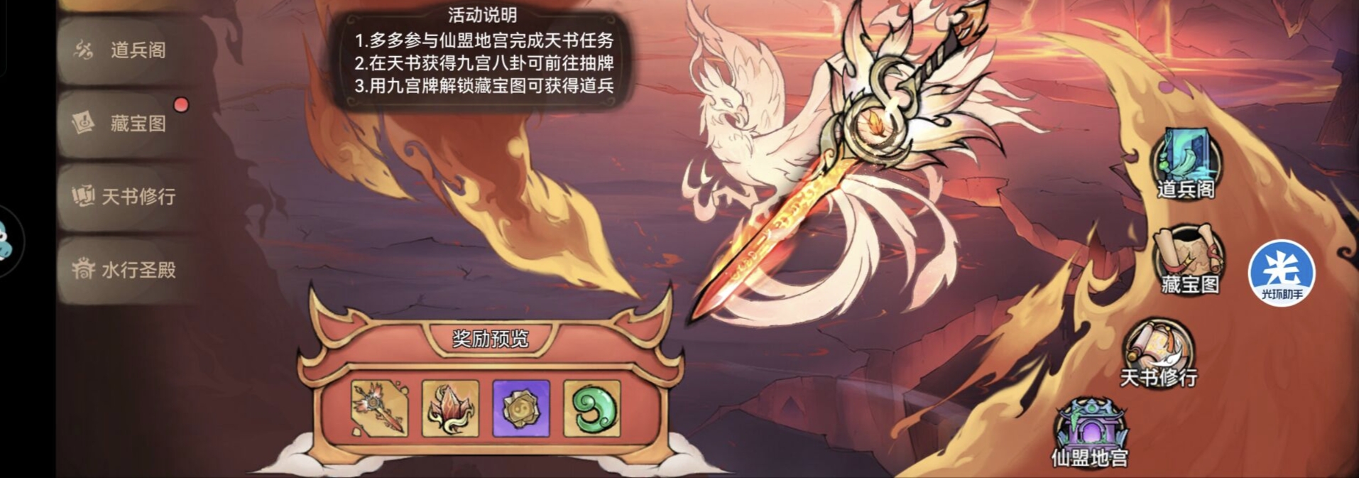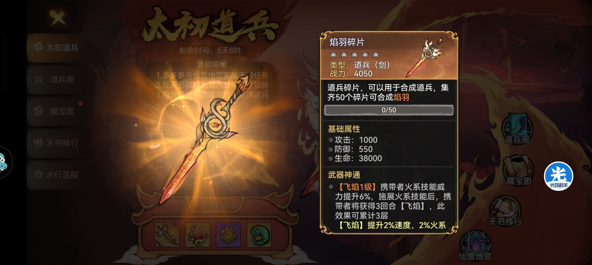 一:太初道兵—道兵阁。①首先【太初道兵】这个活动0氪平民完成藏宝图活动也是可以稳稳拿到一个【焰羽】道兵的。